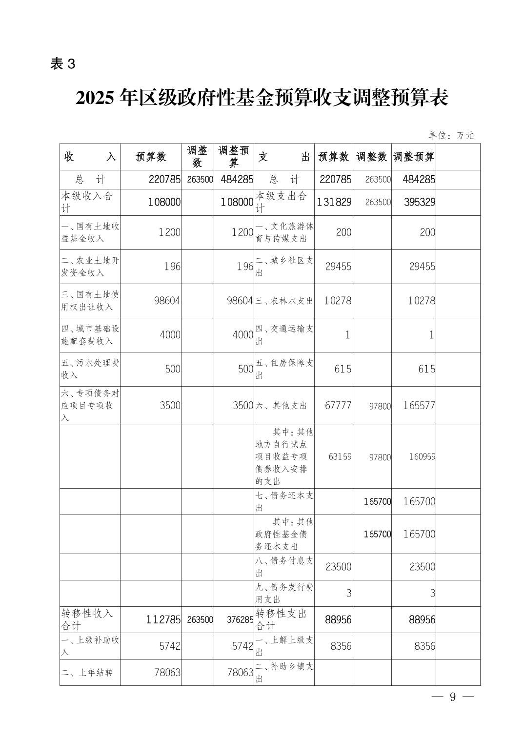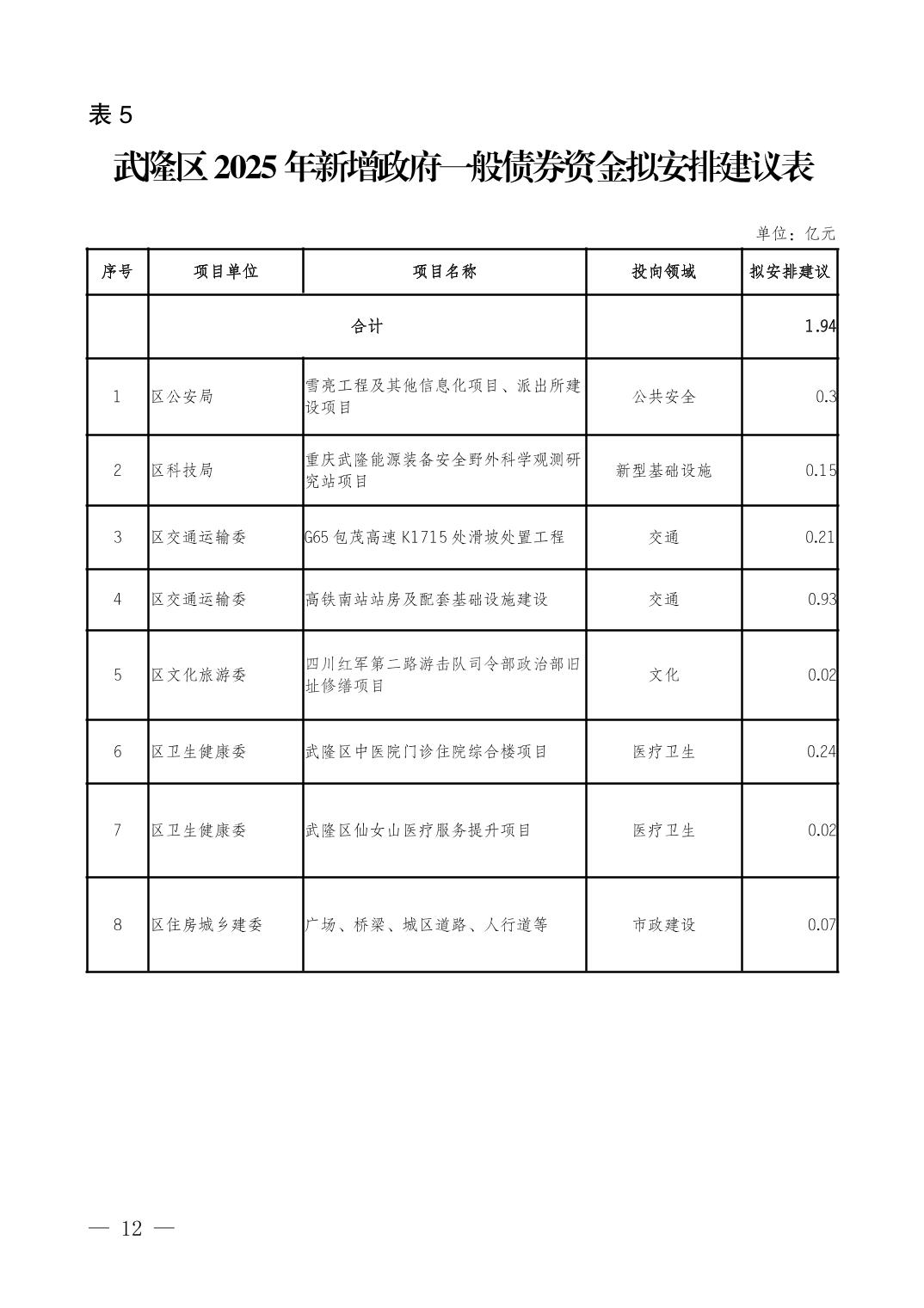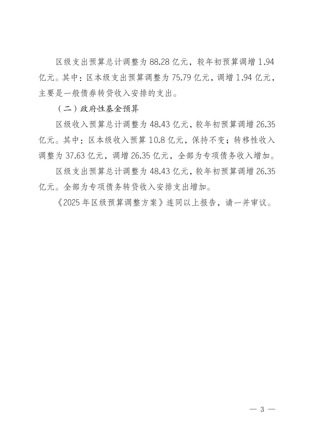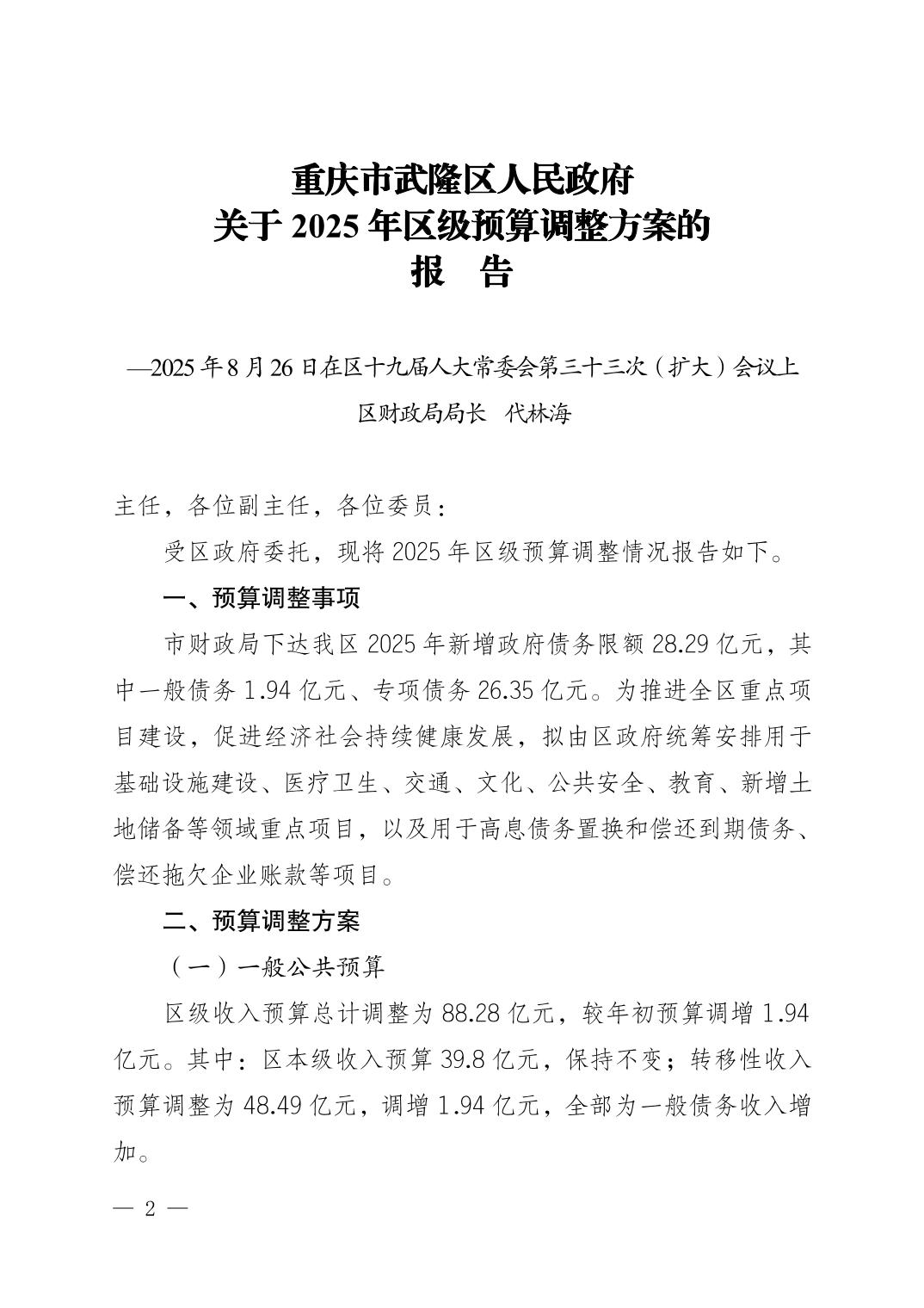 重庆市武隆区人民政府关于2025年区级预算调整方案的报告