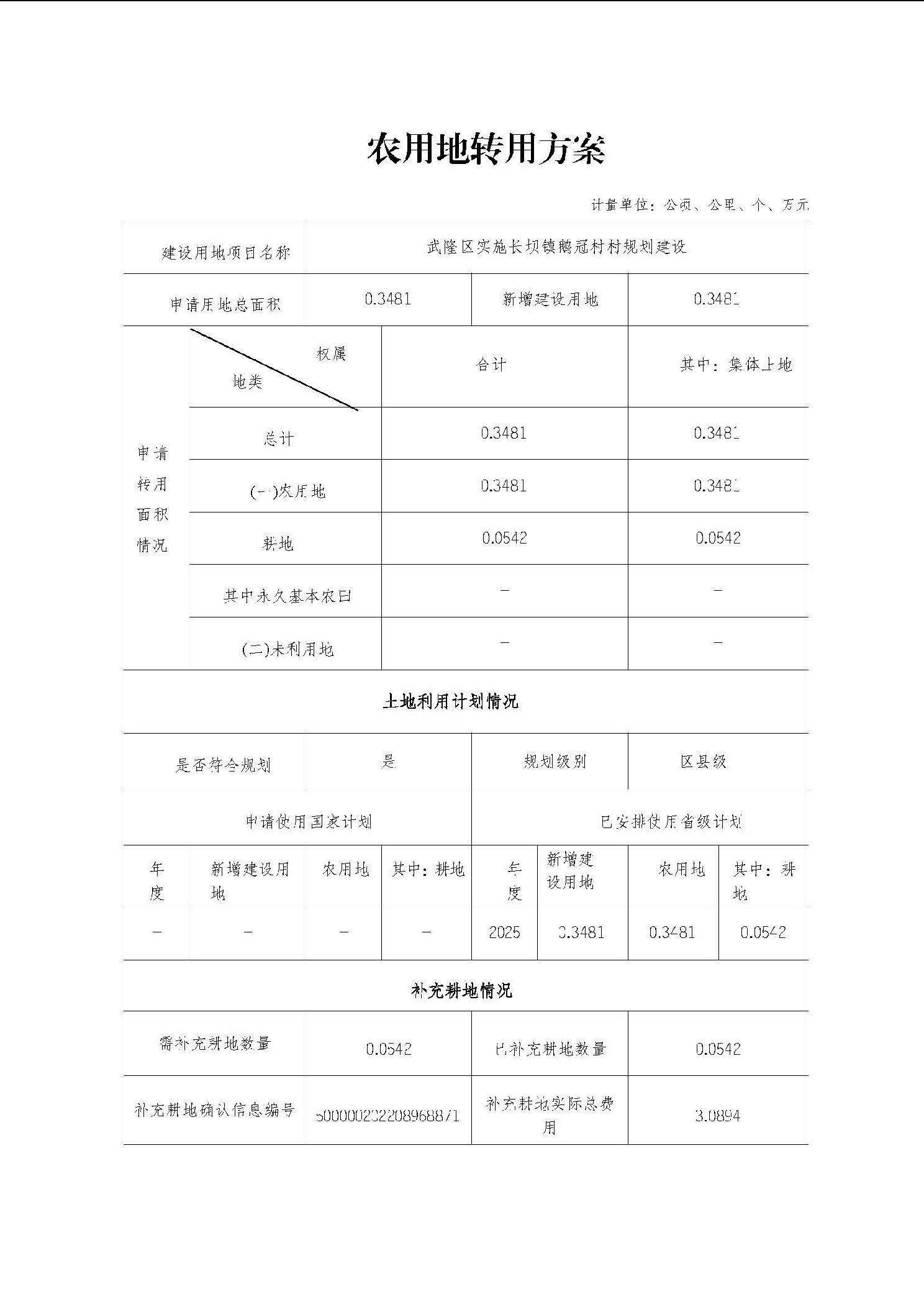 武隆区实施长坝镇鹅冠村村规划建设农用地转用方案