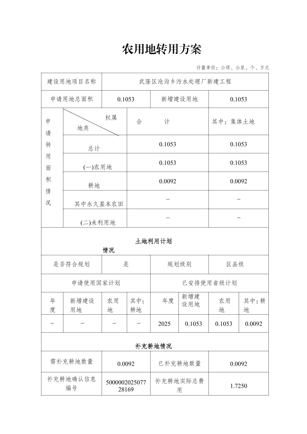 武隆区沧沟乡污水处理厂新建工程农用地转用方案