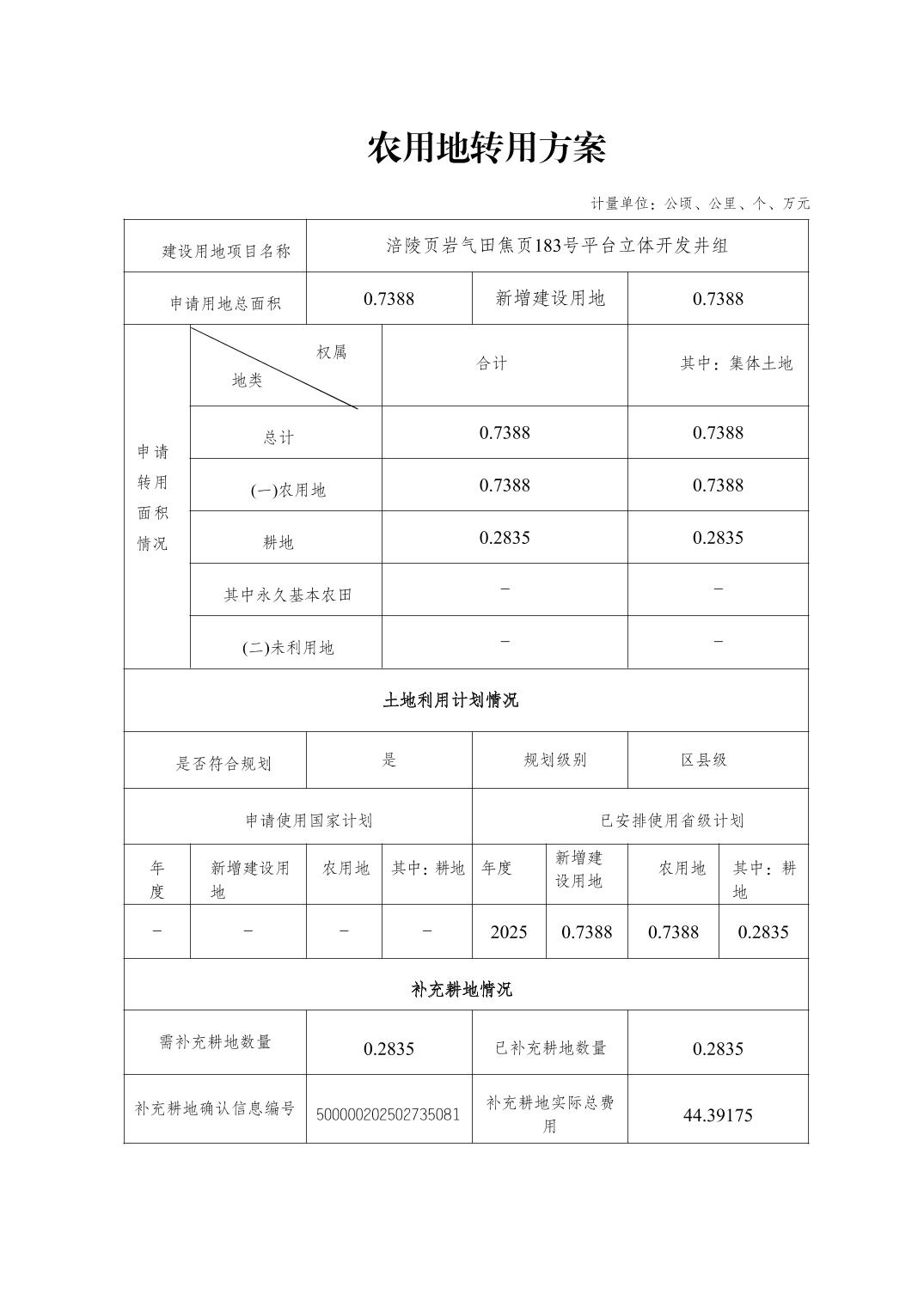 涪陵页岩气田焦页183号平台立体开发井组农用地转用方案