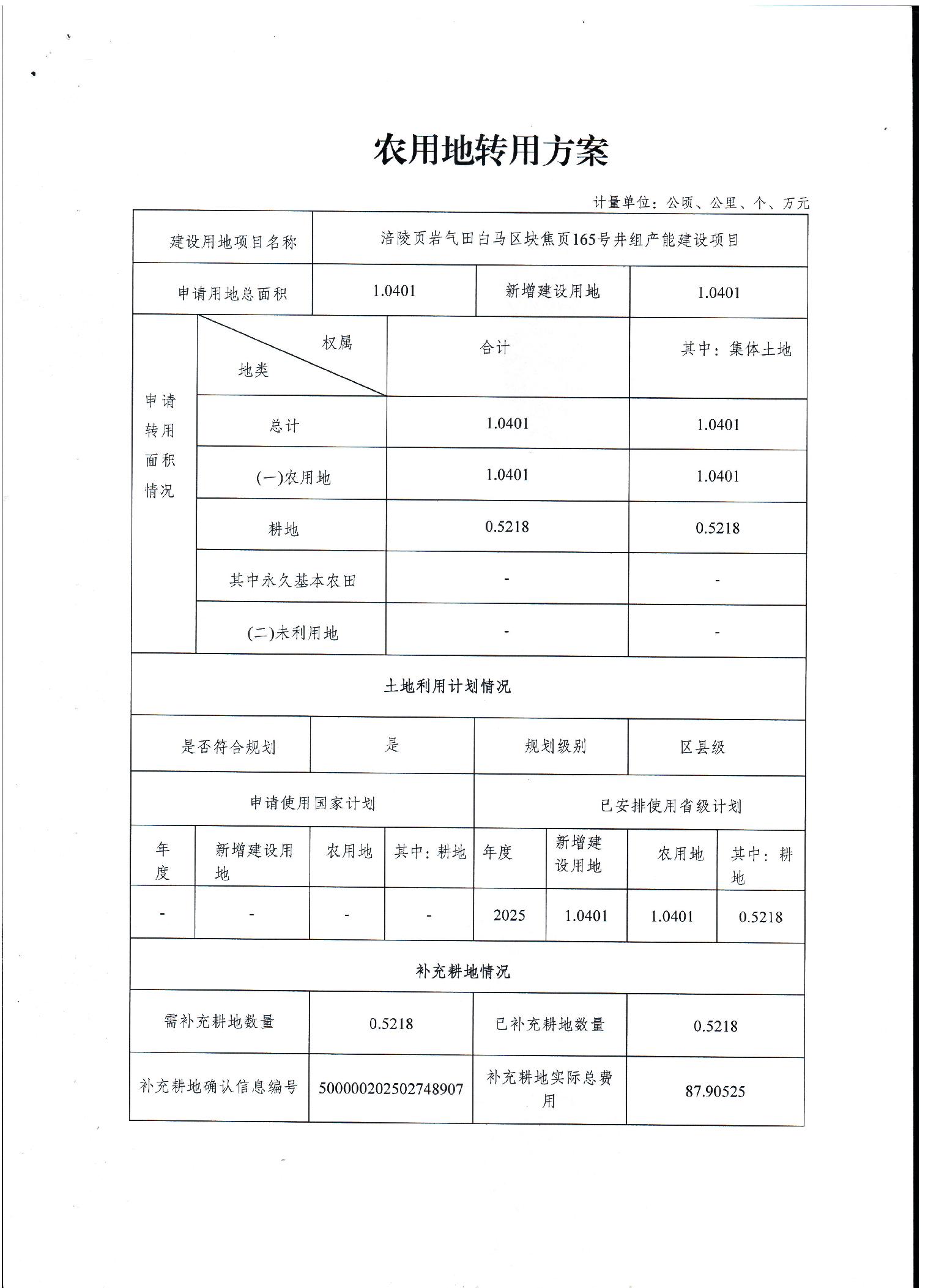涪陵页岩气田白马区块焦页165号井组产能建设项目农用地转用方案