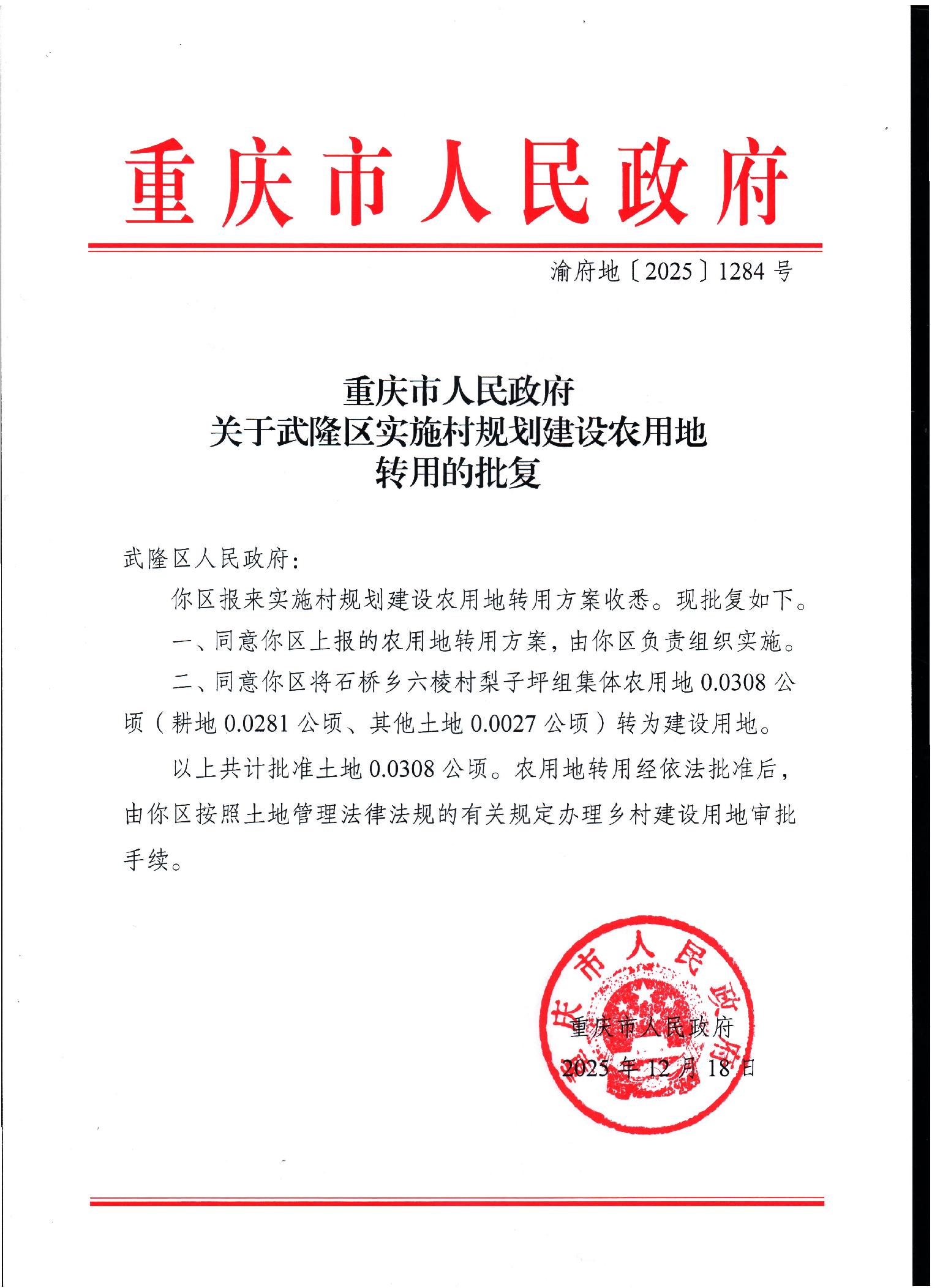 • 渝府地〔2025〕1284号