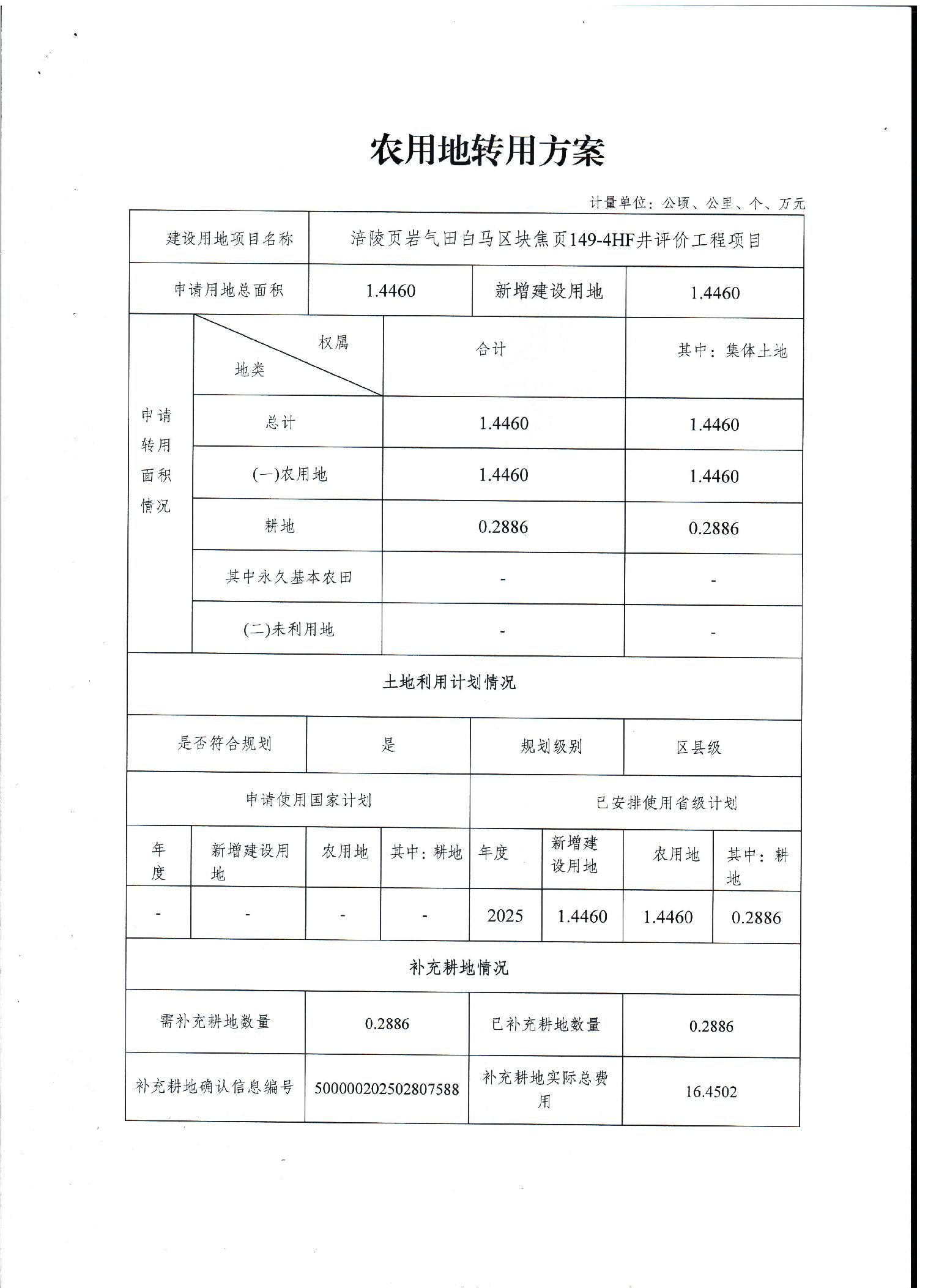 涪陵页岩气田白马区块焦页149-4HF井评价工程项目农用地转用方案