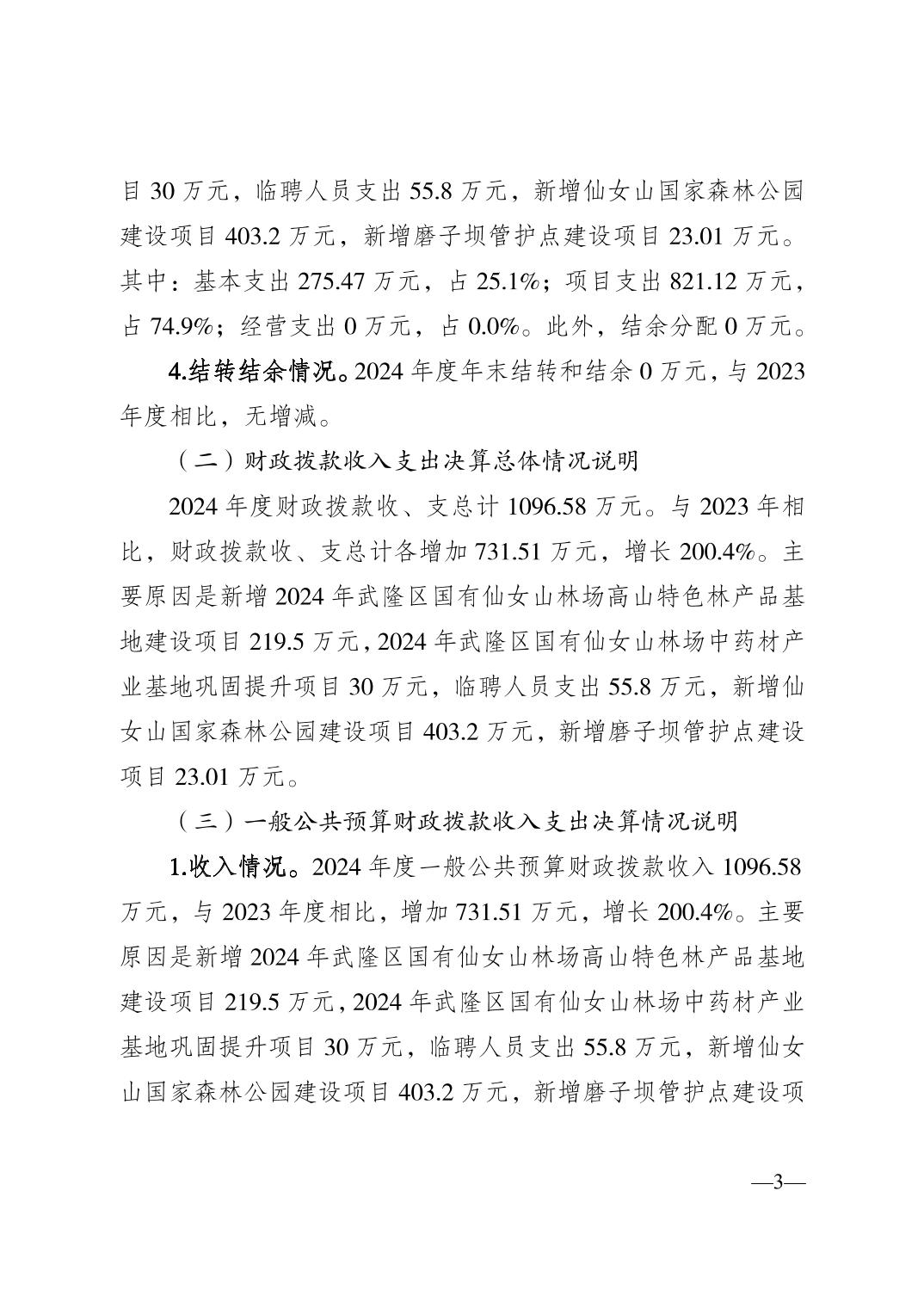 重庆市武隆区仙女山国家森林公园管理处 2024年度决算公开说明