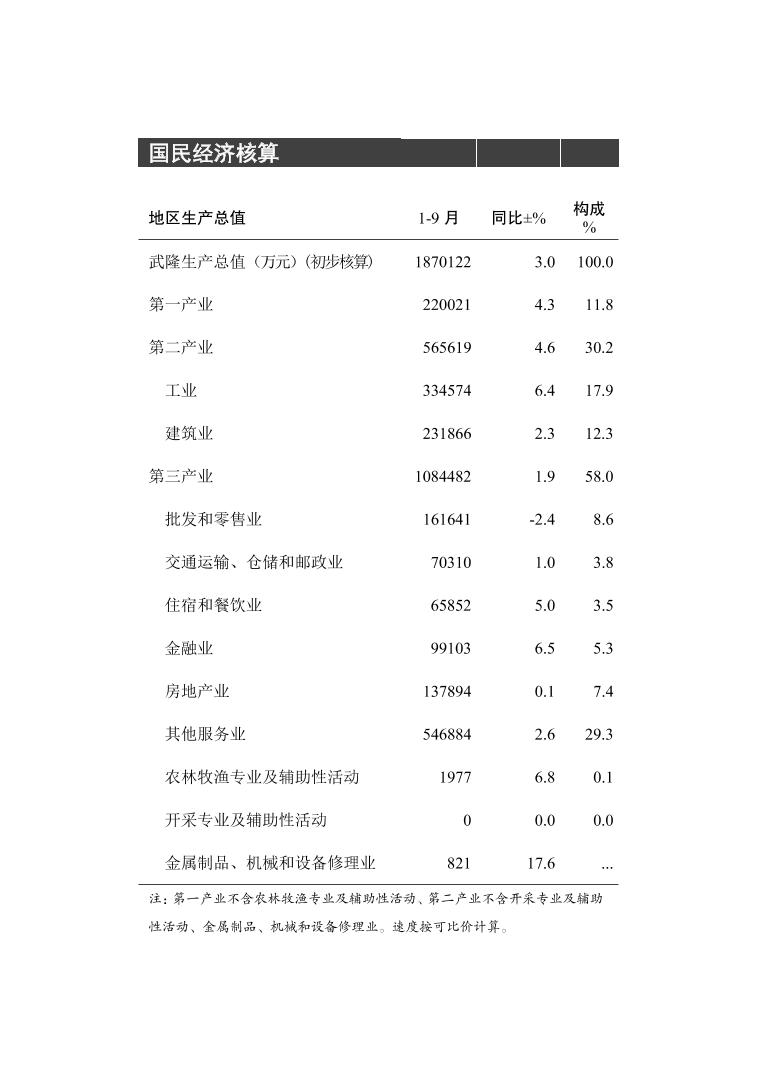 武隆区2025年前三季度数据