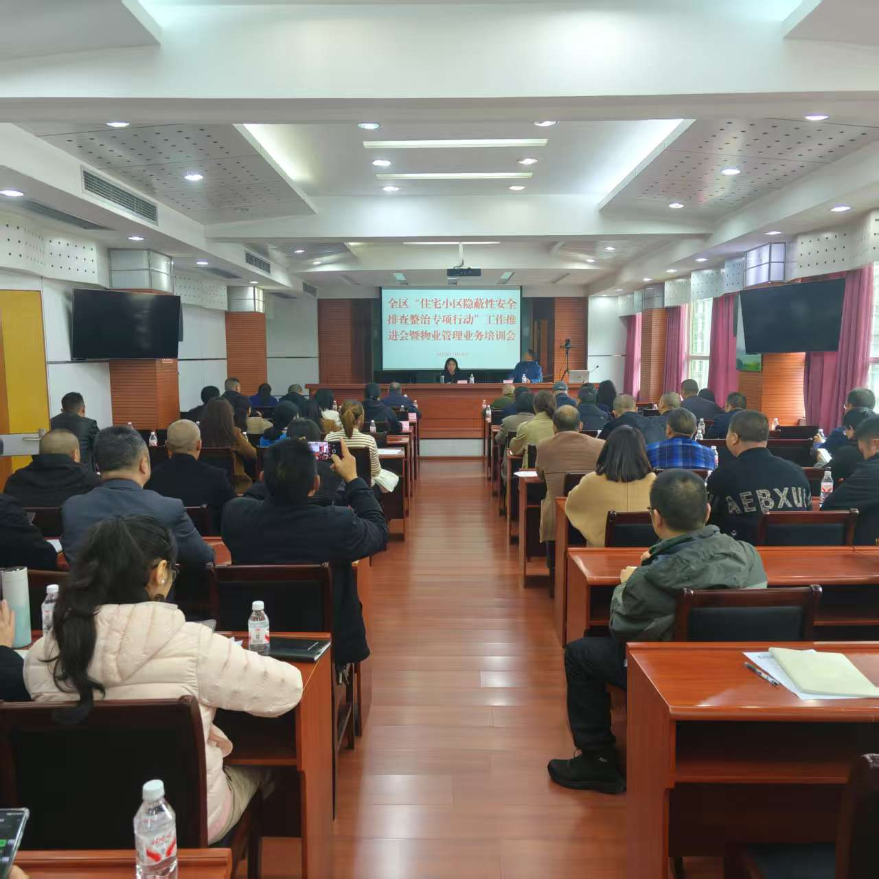 11月10日下午,区住房城乡建委在机关八楼会议室组织召开全区“住宅小区隐蔽性安全排查整治专项行动”工作推进会议暨物业管理业务培训会。区经济信息委、区公安局、区住房城乡建委、区应急管理局、区市场监管局、区城市管理综合执法支队、区消防救援局、凤山街道、芙蓉街道、仙女山街道、白马镇有关负责人,区物业协会、各物业企业负责人参加此次会议。会议组织学习了《住宅小区隐蔽性安全隐患排查整治专项行动方案》,安排布置了近期重点工作。一是部署强调了住宅小区隐蔽性安全隐患排查整治工作,特别是坑井类安全隐患排查清零。二是安排部署街道、乡镇、各物业公司开展安全排查工作。三是安排各物业企业开展安全隐患排查培训。四是强调隐患排查推进整改销号。五是组织开展物业专项维修资金使用培训。