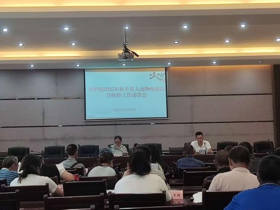 为扎实做好秋季重大动物疫病防控工作,保障畜牧业健康发展、产品质量安全、公共卫生安全,2025年9月16日,火炉镇召开了秋季重大动物疫病综合防控工作部署会议。会议共有40余人参加,包括镇人大主席谢世琼、畜牧中心全体职工、各村负责畜牧工作的干部及防疫员。