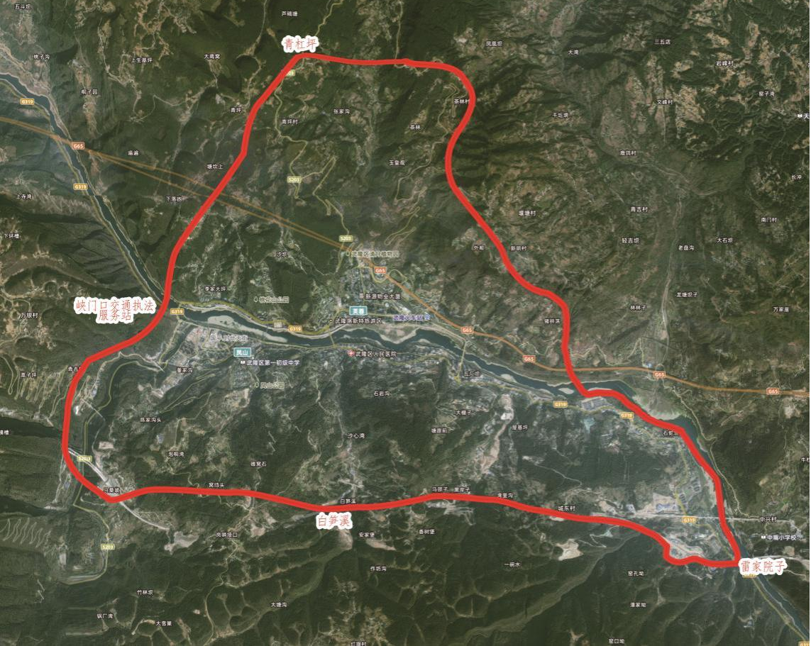 西:凤山街道万银村茅坪村民小组、国道319峡门口执法服务站—芙蓉街道黄金村黄金坝村民小组—乌江一线;