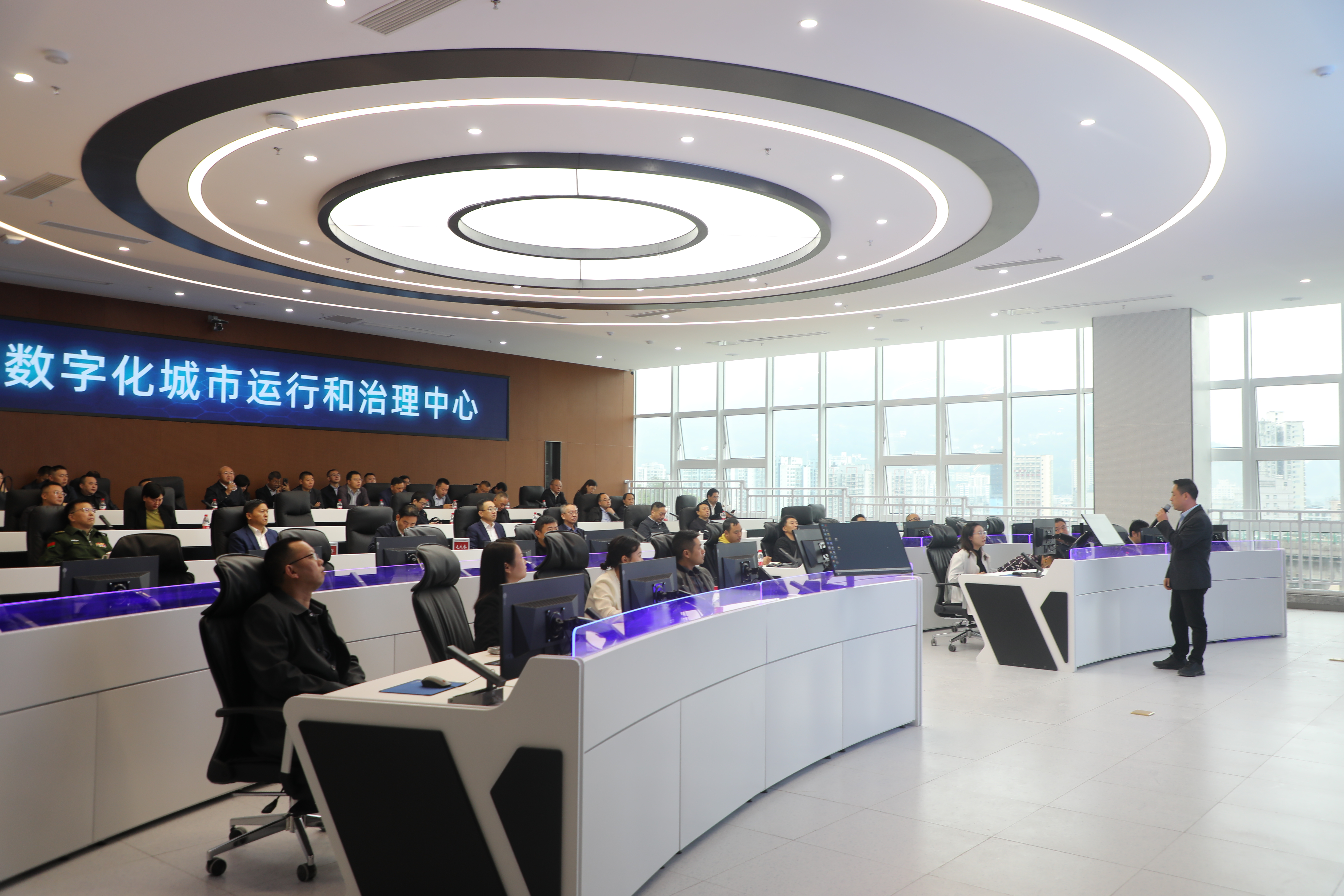 会前,在区数字化城市运行和治理中心,沧沟乡、江口镇、区住房城乡建委分别就“141”系统、“砂砖房监管一件事”等应用作交流发言。何庆认真听取汇报、观看演示,并逐一点评。
