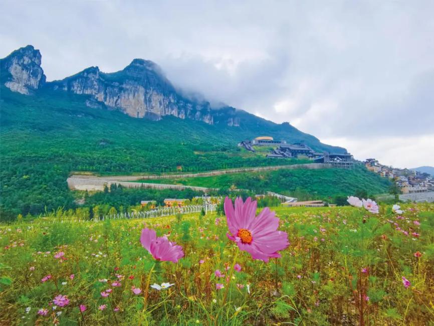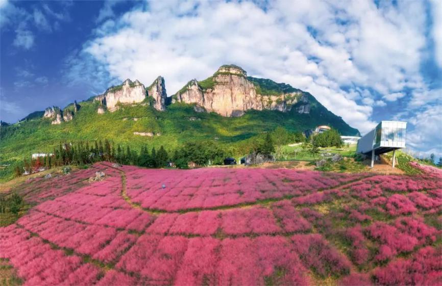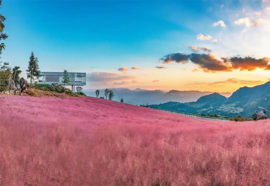 你要写“此时的浪花是唯美的粉色,它在风中婀娜多姿,萦绕在懒坝的山谷之中