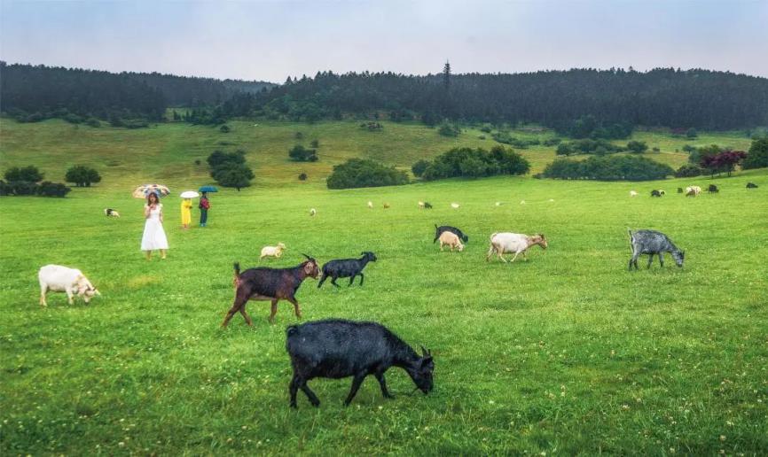 你要写“潜在仙女山大草原的奔跑撒欢处,目之所及皆是草木郁郁葱葱。铺天盖地的草场呈现出一片盎然生机”