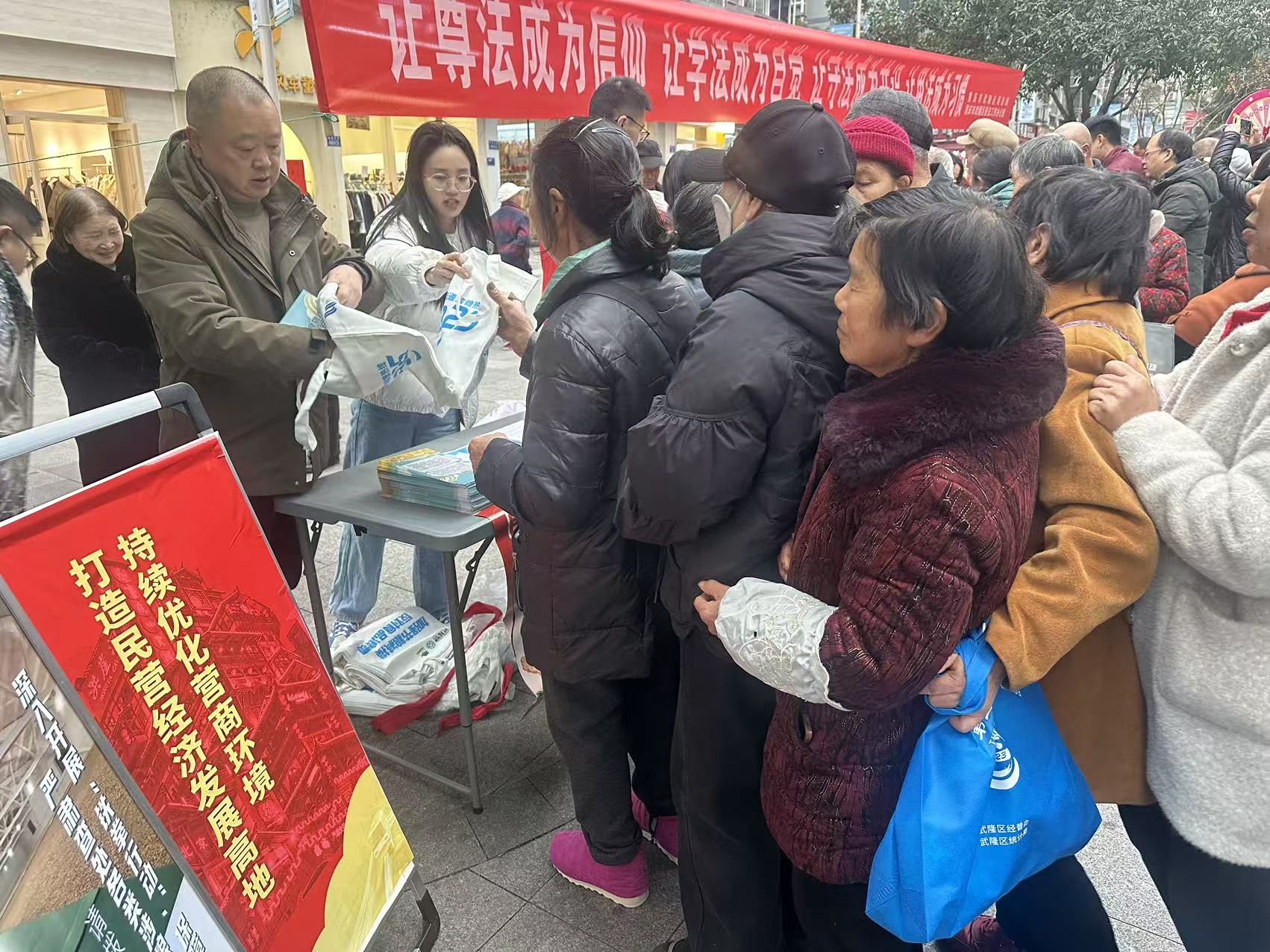 为进一步学习宣传法治思想,推动宪法深入人心,2025年12月4日,区发展改革委在武隆区四方街组织开展“营商环境、民营经济、粮食安全及信用体系建设”等宣传活动。本次活动通过发放宣传资料、讲解专业知识、现场咨询等方式向广大市民同志进行宣传。
