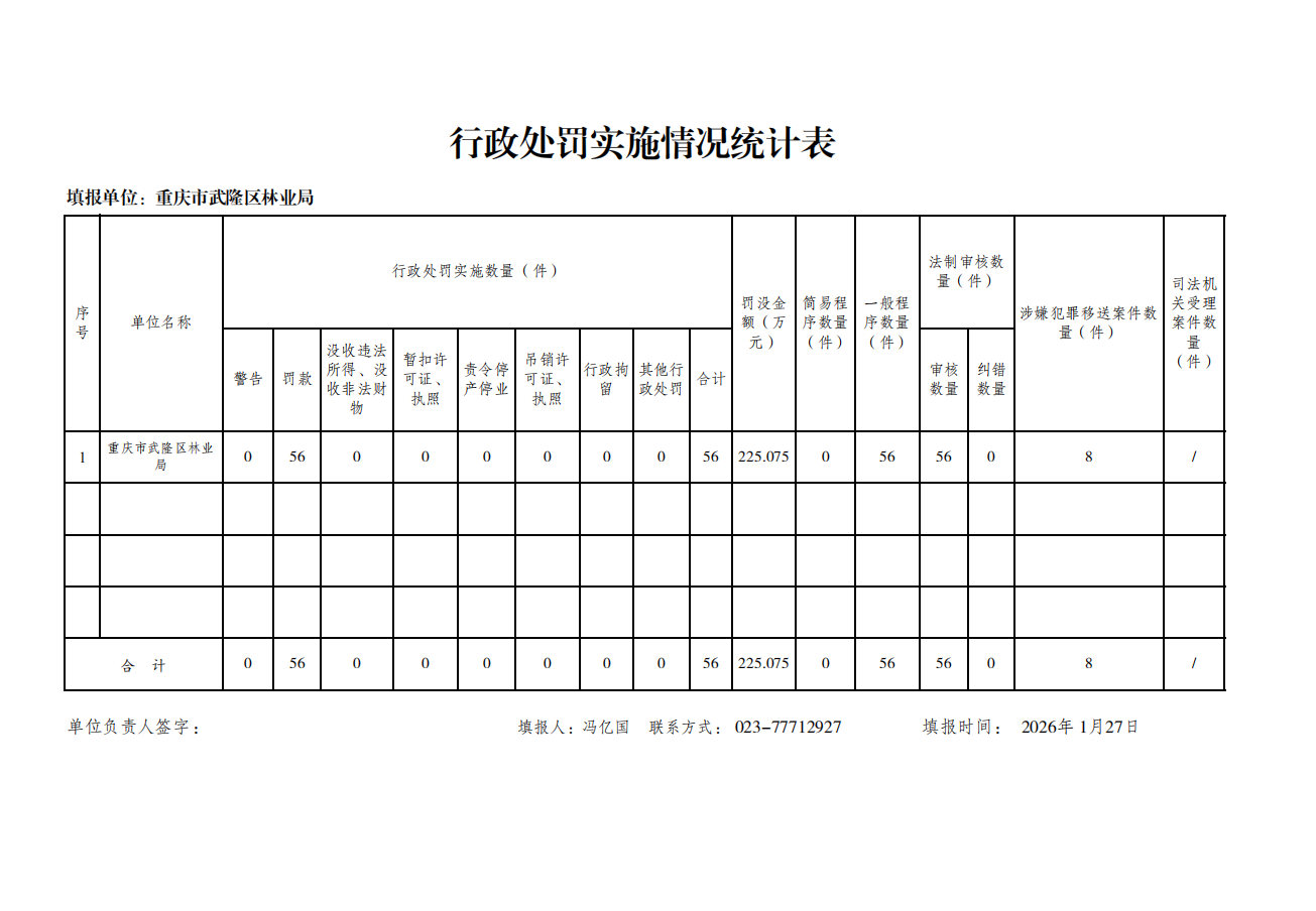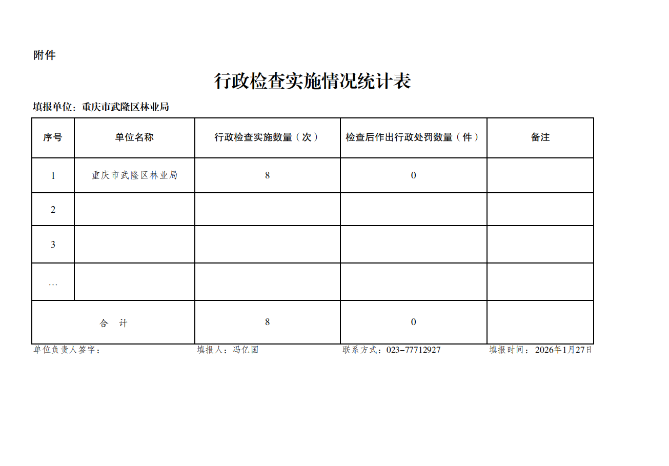 重庆市武隆区林业局2025年度行政执法数据公示