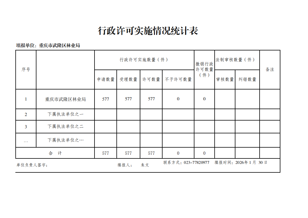 重庆市武隆区林业局2025年度行政许可实施情况公示