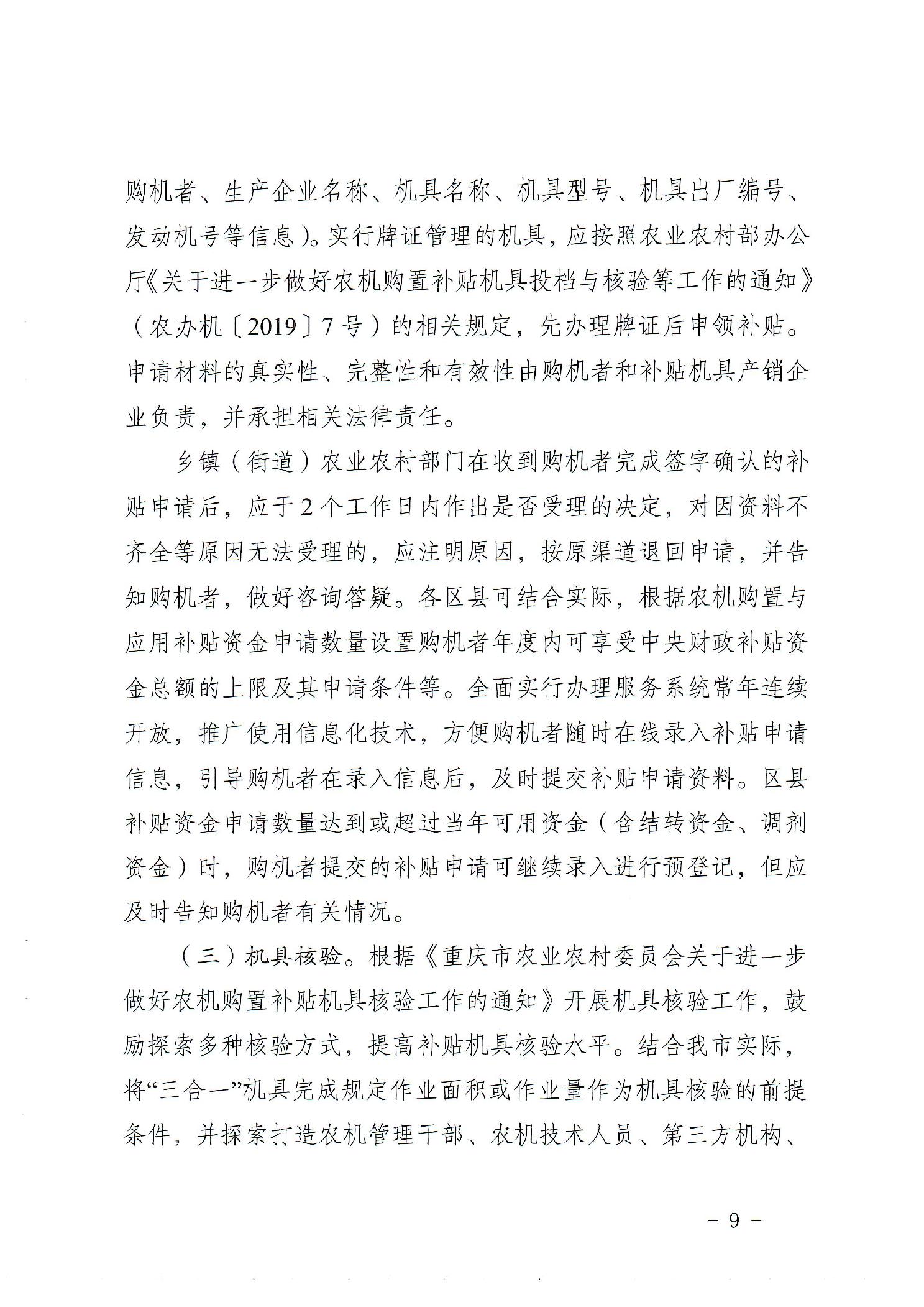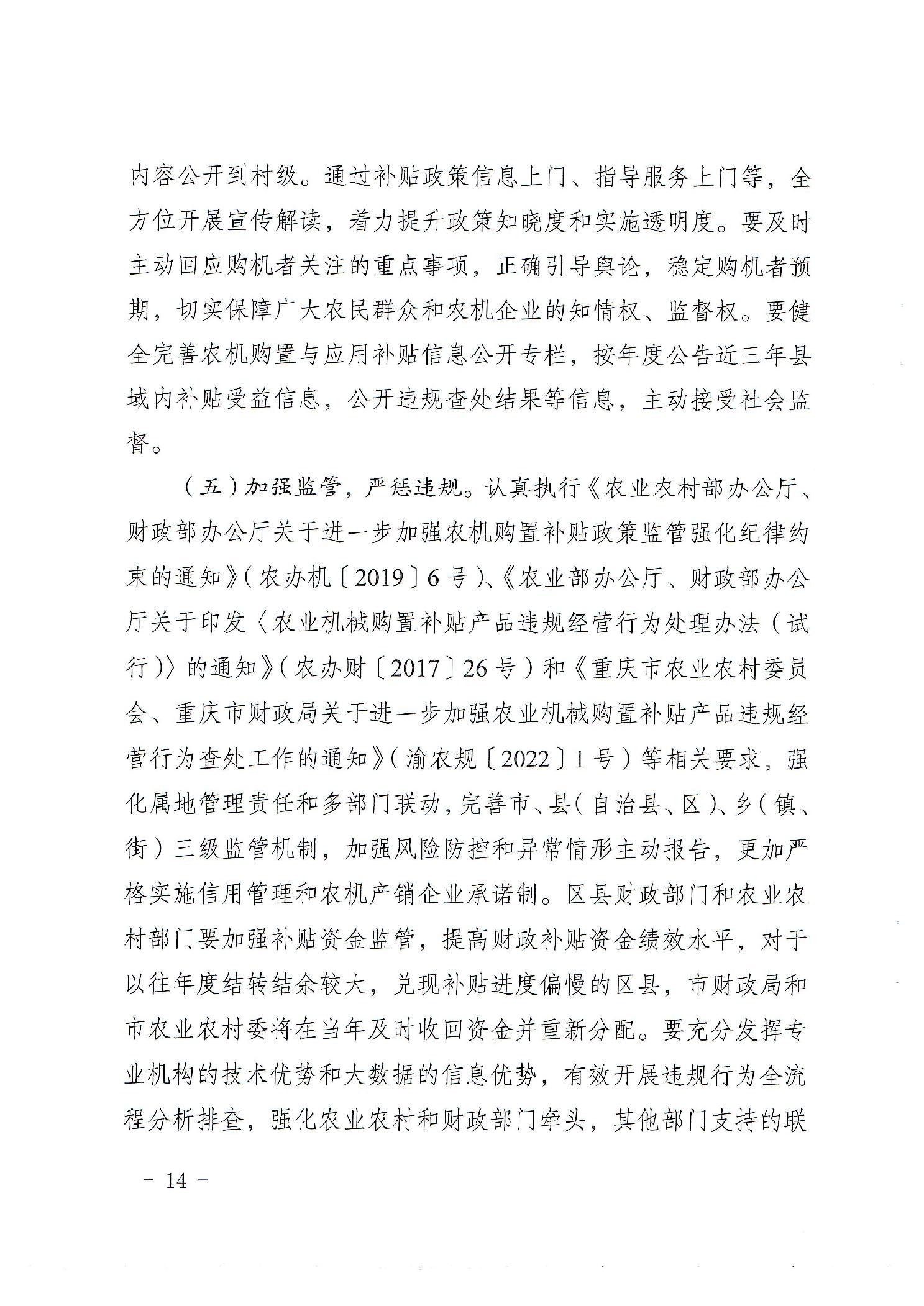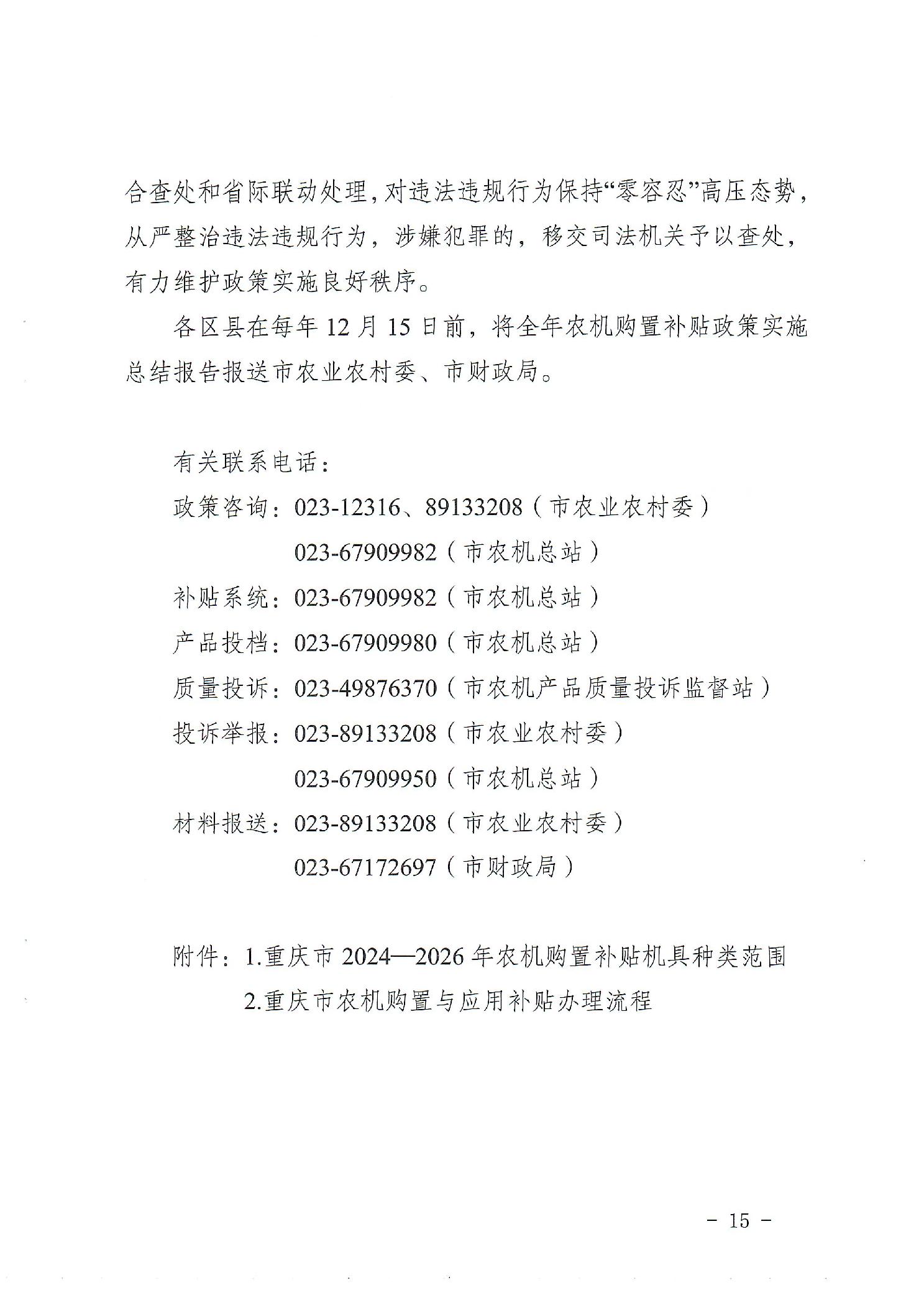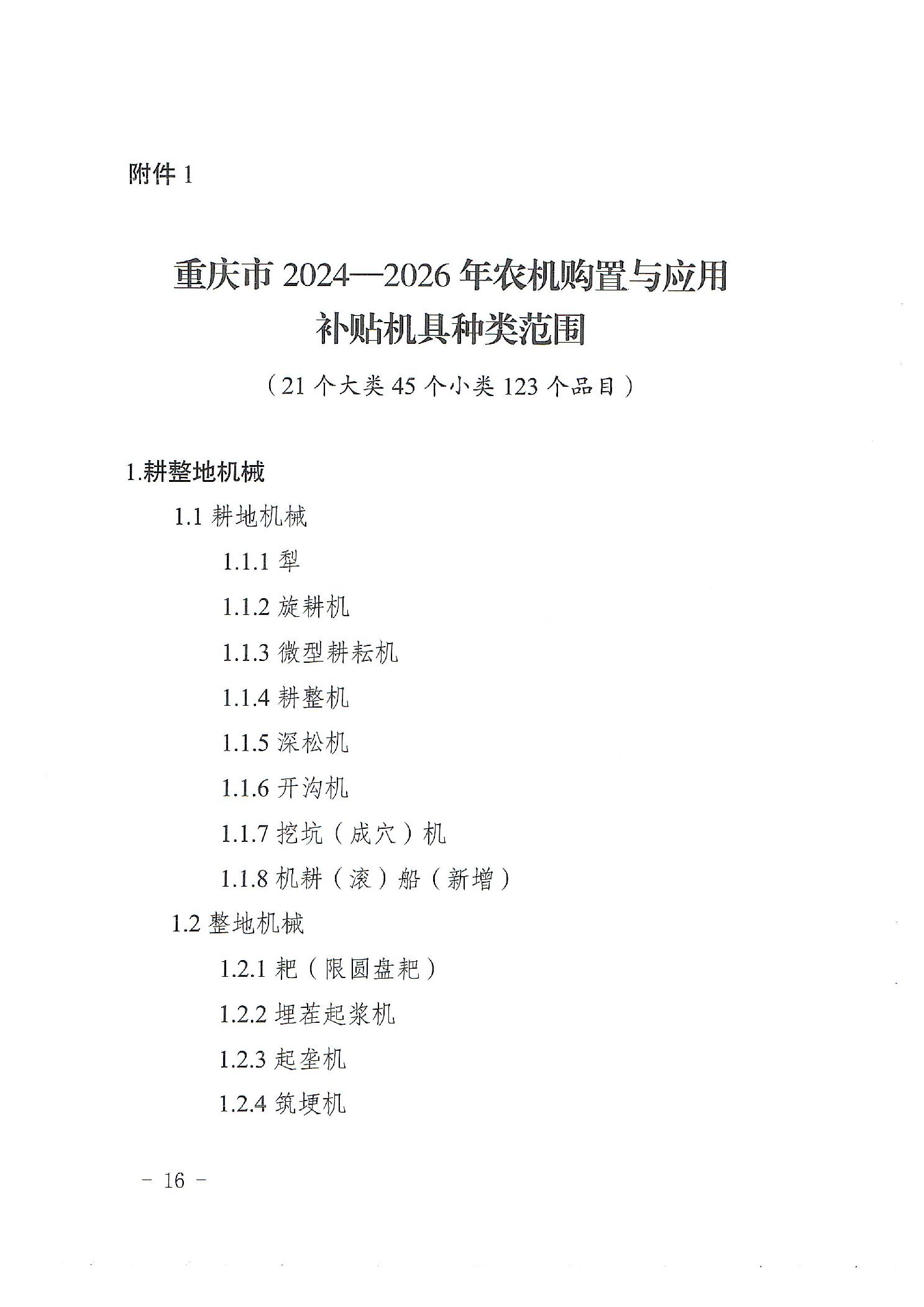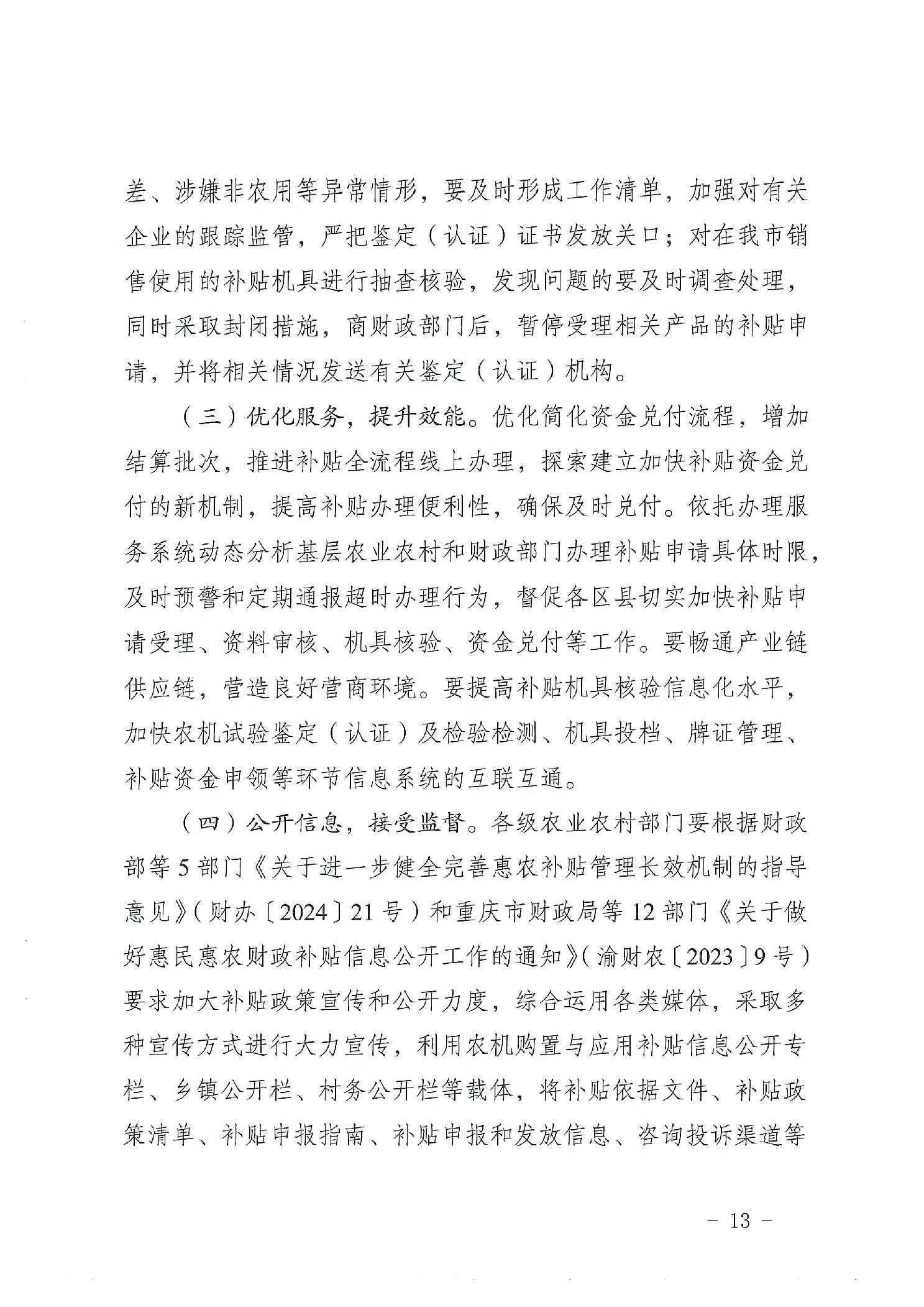 重庆市农业农村委员会、重庆市财政局关于印发2024-2026年农机购置与应用补贴实施方案的通知