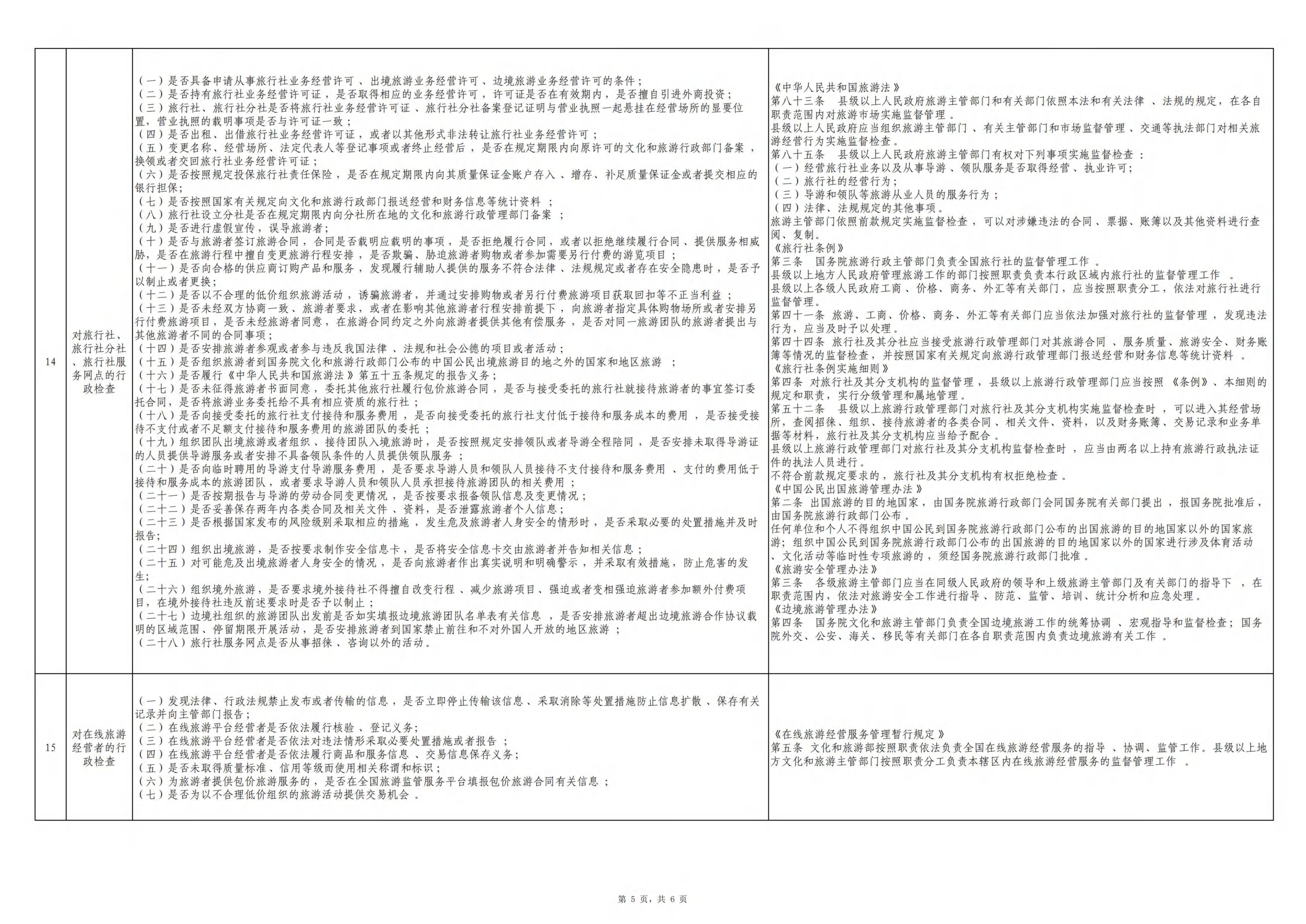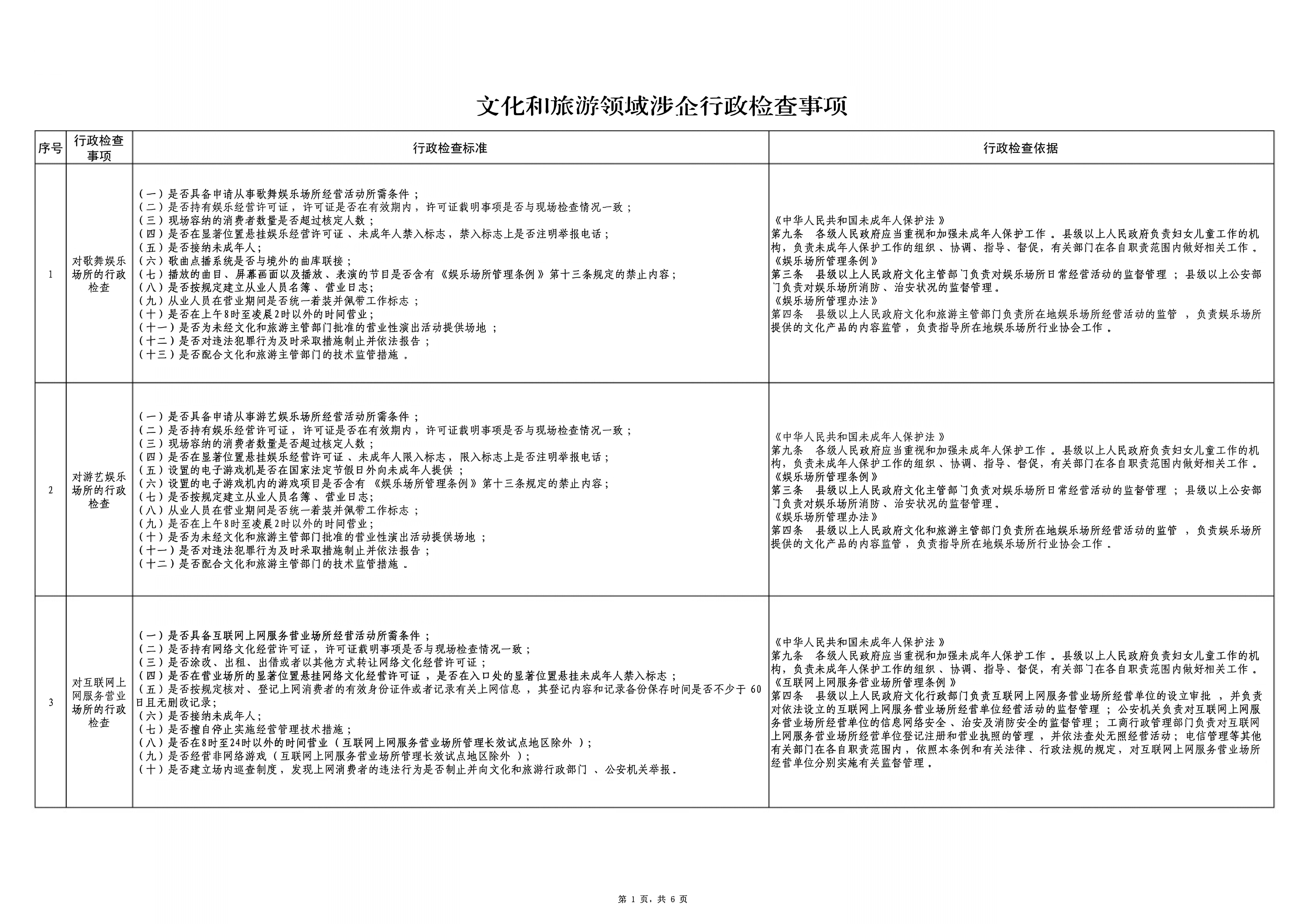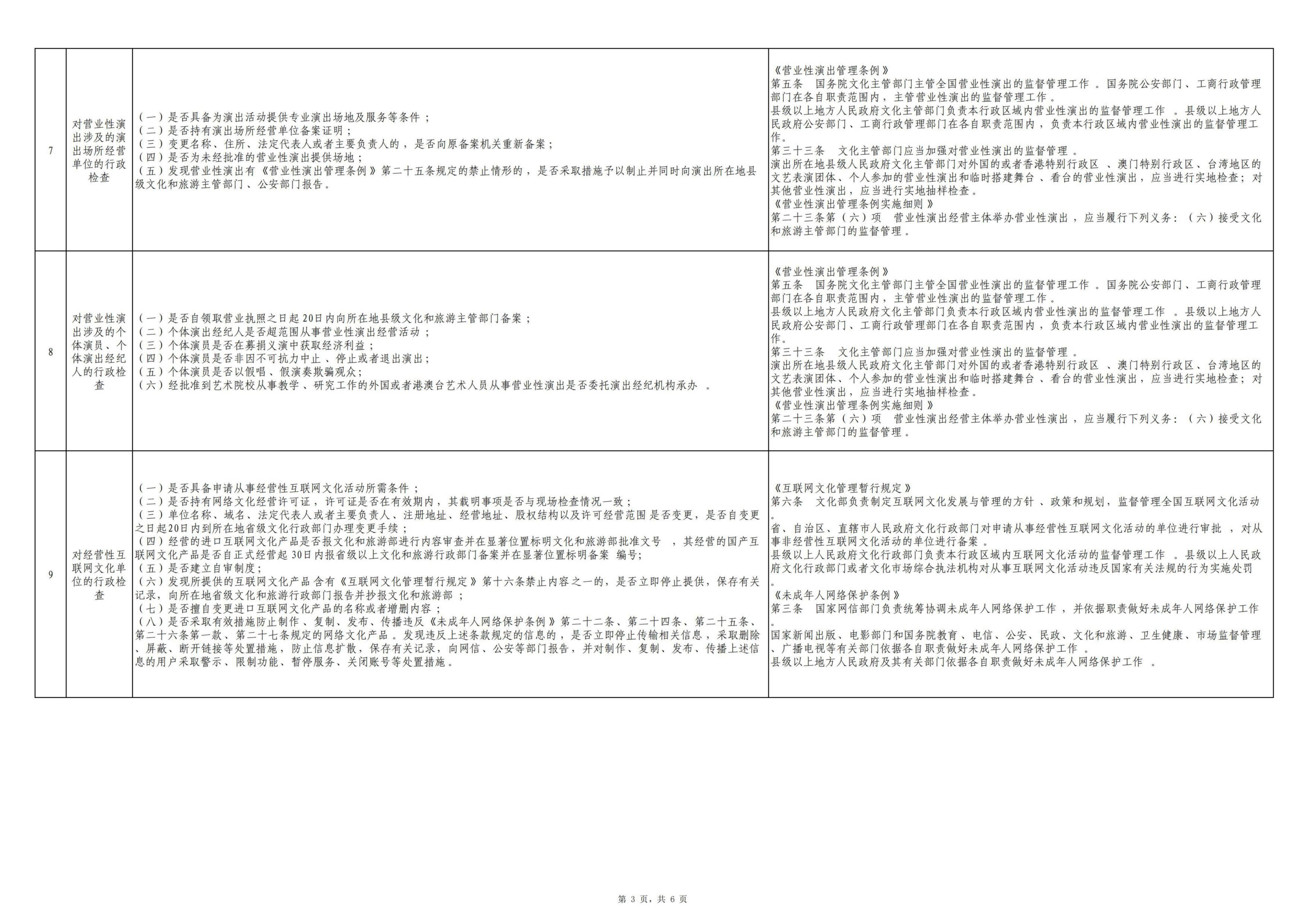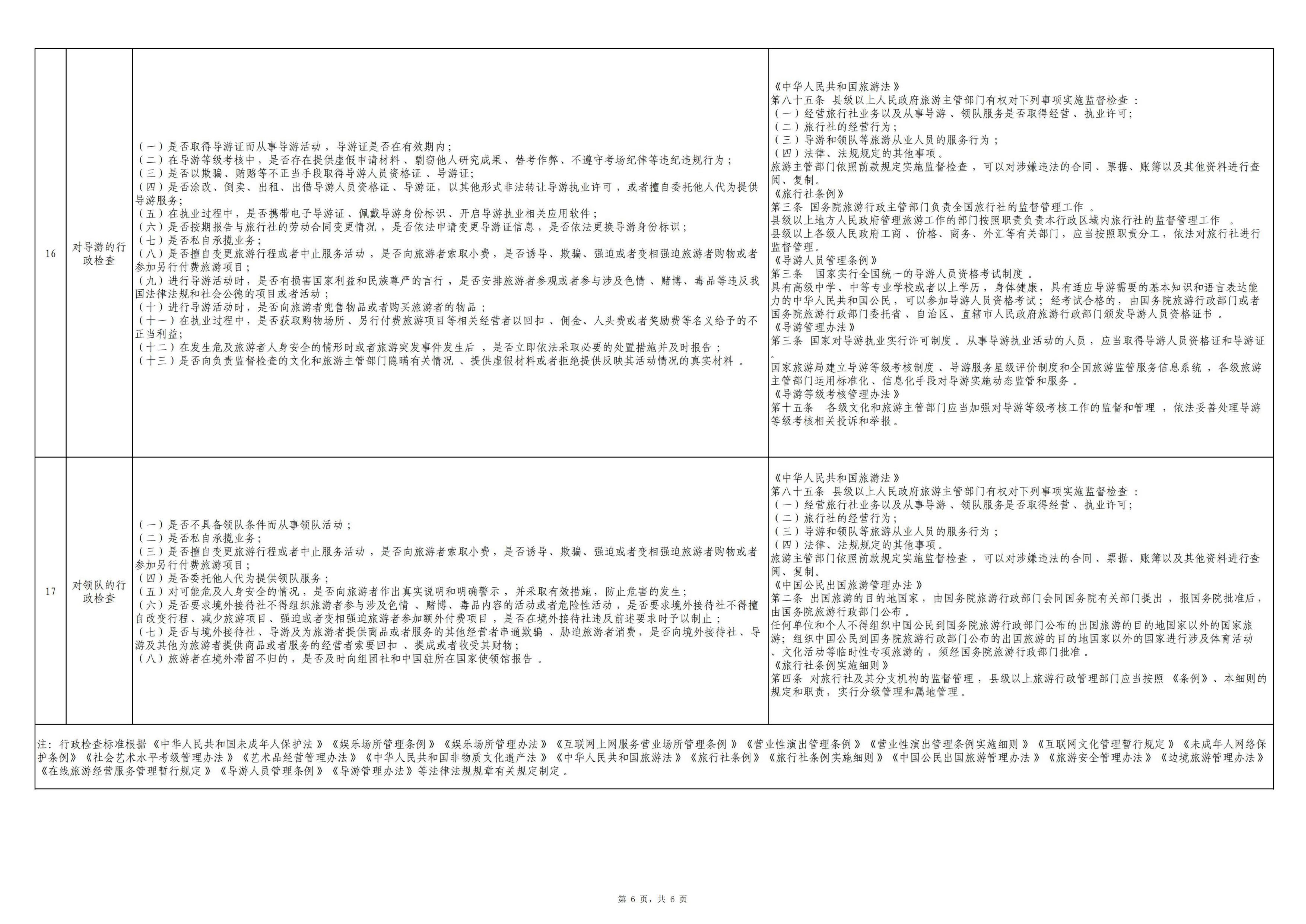 武隆区文化和旅游发展委员会涉企行政检查事项