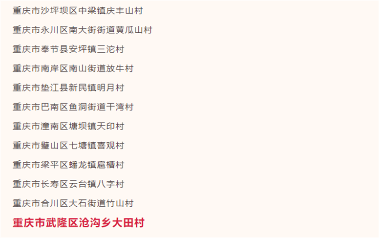 日前,农业农村部公示了2021年中国美丽休闲乡村名单,重庆12个乡村上榜,其中武隆沧沟乡大田村成功入选。