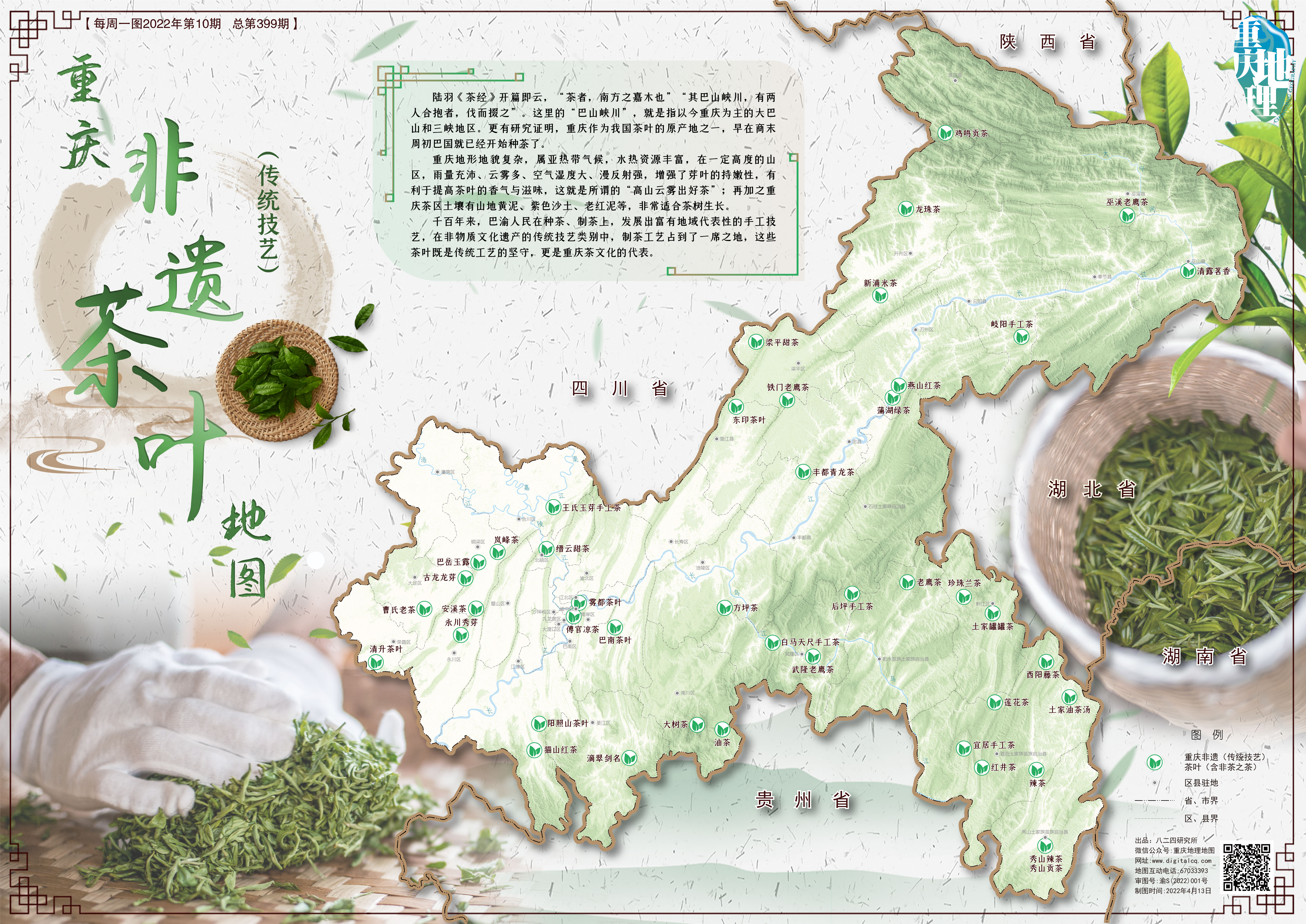 近日,市规划和自然资源局联合重庆市地理信息和遥感应用中心精选重庆非遗传统技艺中的巴渝茶叶(内含老鹰茶等非茶之茶),为市民朋友推出《重庆非遗(传统技艺)茶叶地图》,武隆老鹰茶、后坪手工茶、白马天尺手工茶入选。