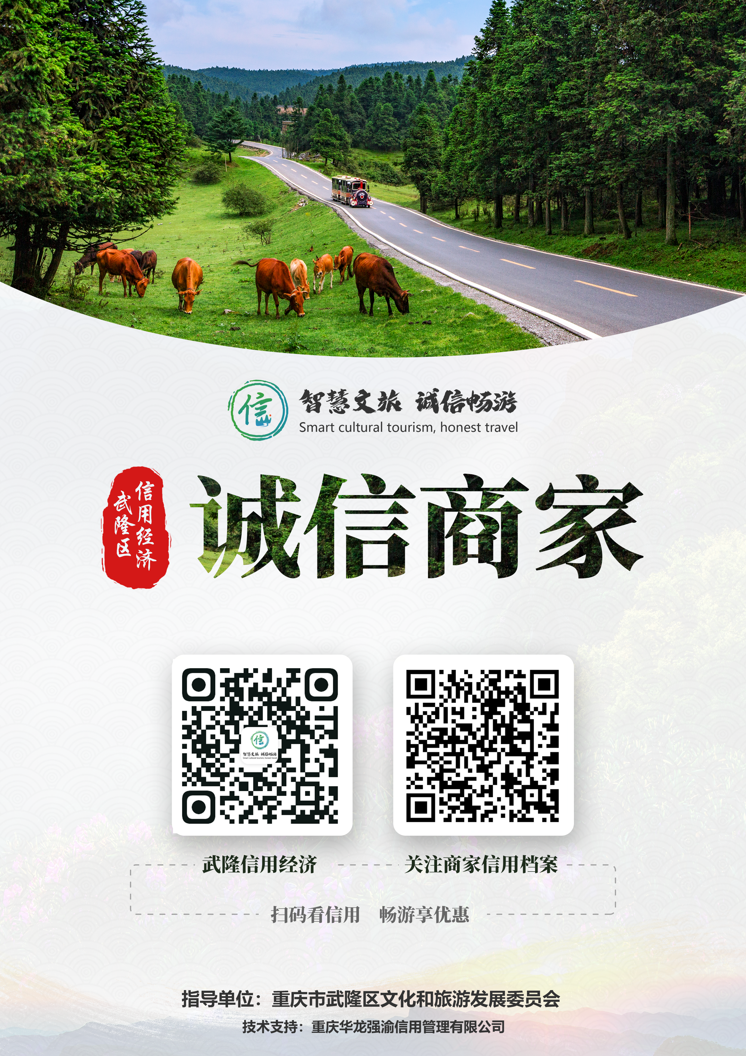 “智慧旅游-信用消费”平台是武隆区文旅委牵头开发建设的平台,同时也是文化和旅游部的试点项目。它是集合“吃住行游购娱”全要素的消费平台,为来武游客提供信用消费渠道。