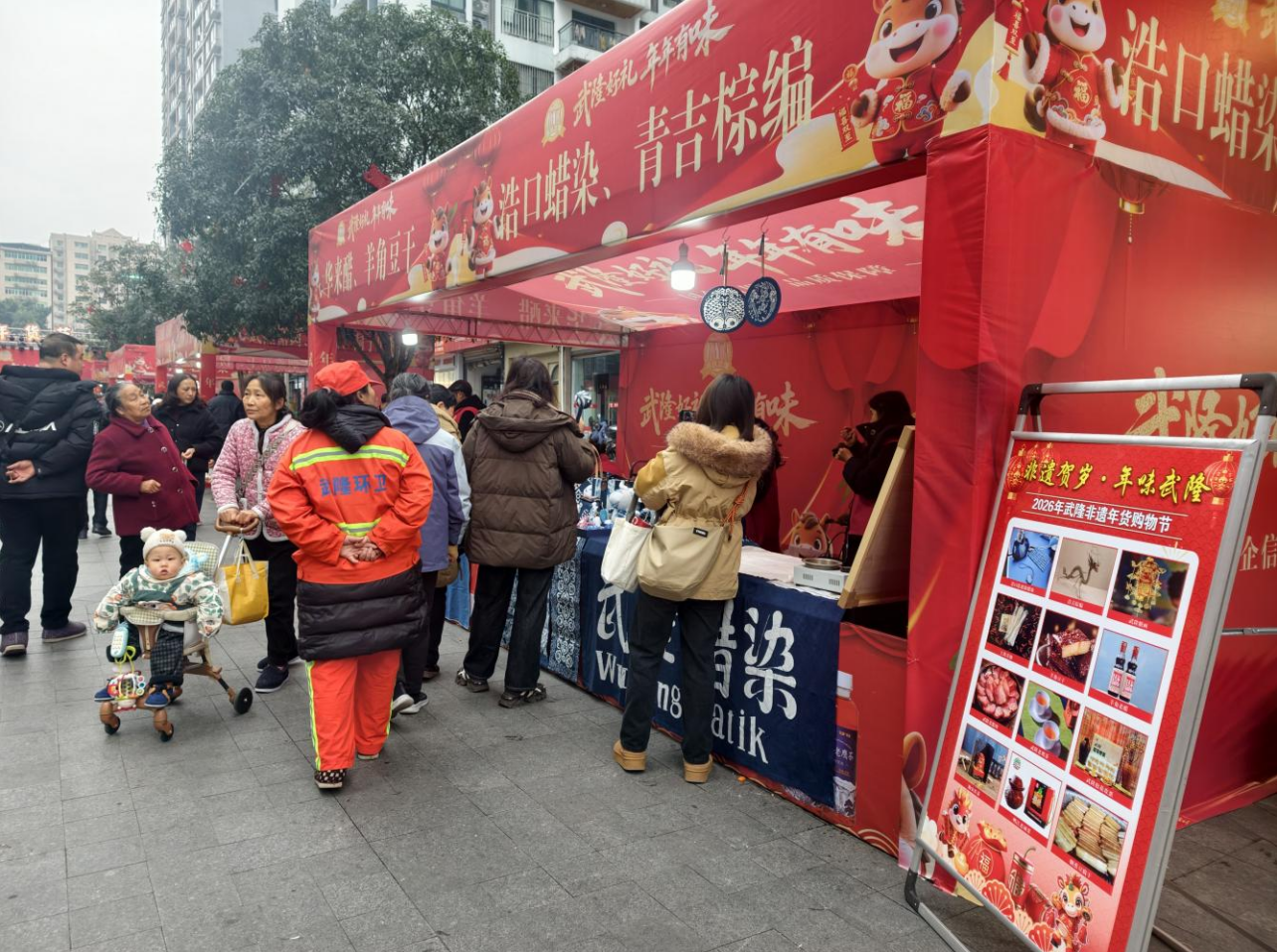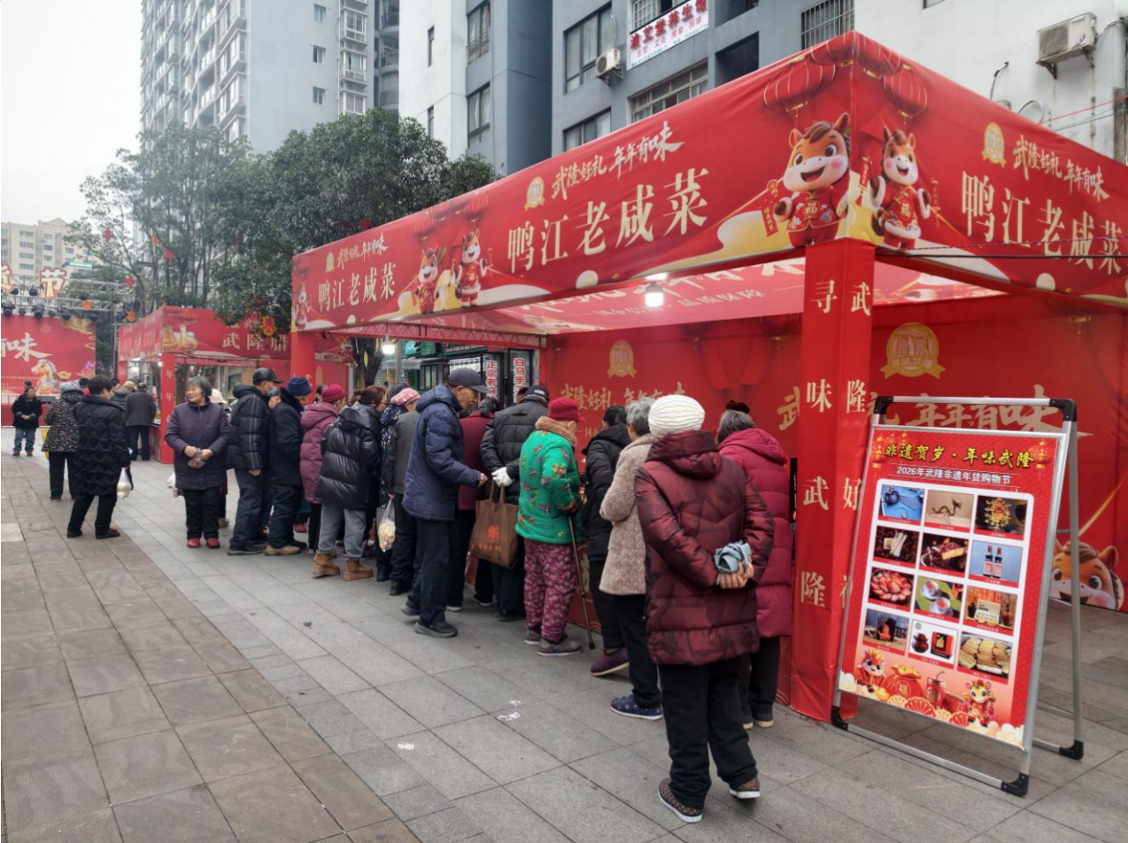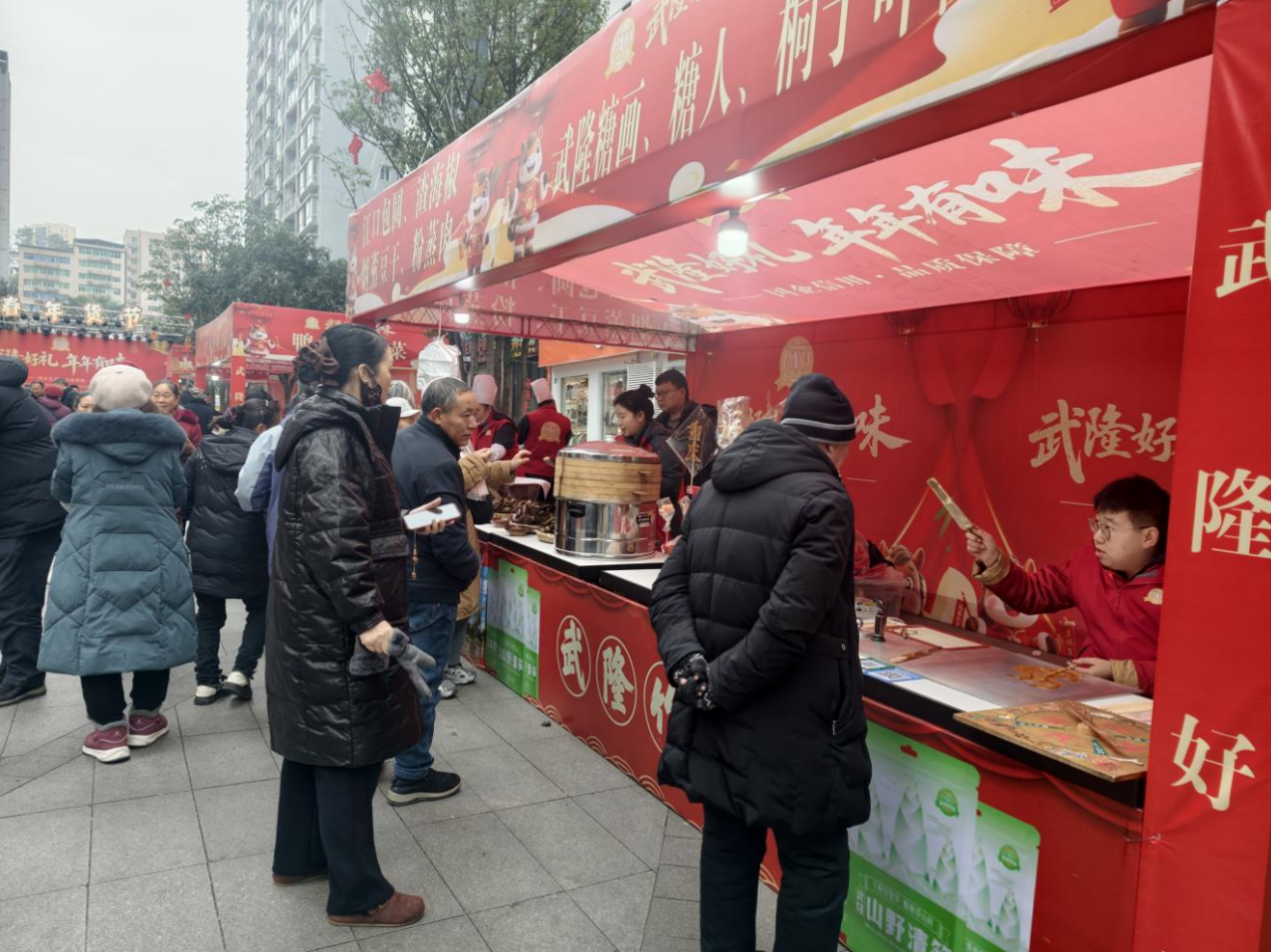 为喜迎2026年新春佳节,进一步激活节日消费市场,推动非遗传承与乡村振兴深度融合,由区住房城乡建委、区农业农村委、区商务委、区文化旅游委等部门联合牵头,区农业产业发展有限公司承办,区文化遗产保护管理所协办的“武隆好礼·年年有味”新春年货促销节暨“非遗贺岁·年味武隆”2026年武隆区非遗年货购物节,于1月23日在世纪五龙城四方街启幕。