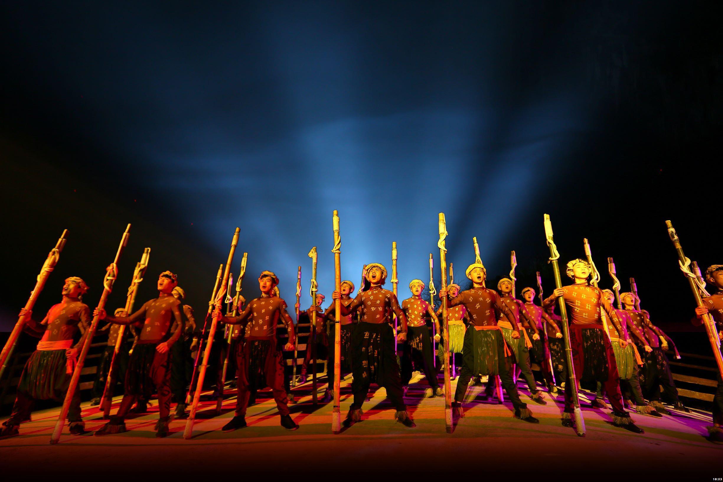 《印象武隆》实景歌会由印象“铁三角”张艺谋任艺术顾问,王潮歌、樊跃任总导演,近200位特色演员现场真人真情献唱,以濒临消失的“号子”为主要内容,让观众在70分钟的演出中亲身体验自然遗产地壮美的自然景观和巴蜀大地独特的风土人情。