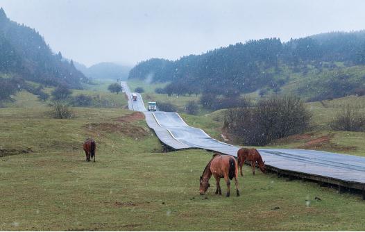 11月12日早上,武隆区2021初冬第一场雪降临在武隆仙女山,从早上七点多开始持续下到中午十二点,纷纷扬扬,雪花一朵一朵从空中飘下。