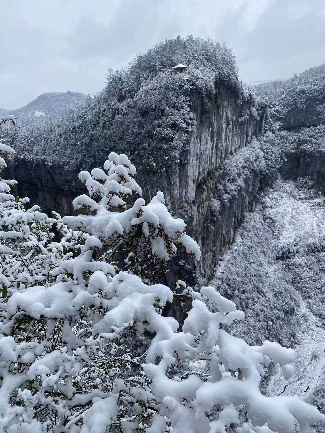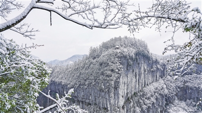 12月26日,武隆天生三桥迎来十年难遇的超大规模降雪,满山银装素裹、冰堆玉砌,美不胜收。