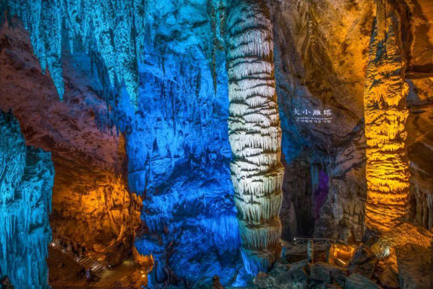 芙蓉洞,国家AAAAA级景区。有着“溶洞之王”的美名,形成于第四纪更新世(大约120多万年前),发育在古老的寒武系白云质灰岩中。洞内深部稳定气温为16.1度,冬暖夏凉。芙蓉洞主洞长 2700 米,游览道1860米,底宽12—15米以上,最宽69.5米;洞高一般8—25米,最高48.3米;洞底总面积37000平方米,其中辉煌大厅面积在1000平方米以上。包括世界各类洞穴近 30 余个种类的沉积特征,其数量之多、形态之美、质地之洁、分布之广,为国内罕见,被誉为“世界三大洞穴”之一。