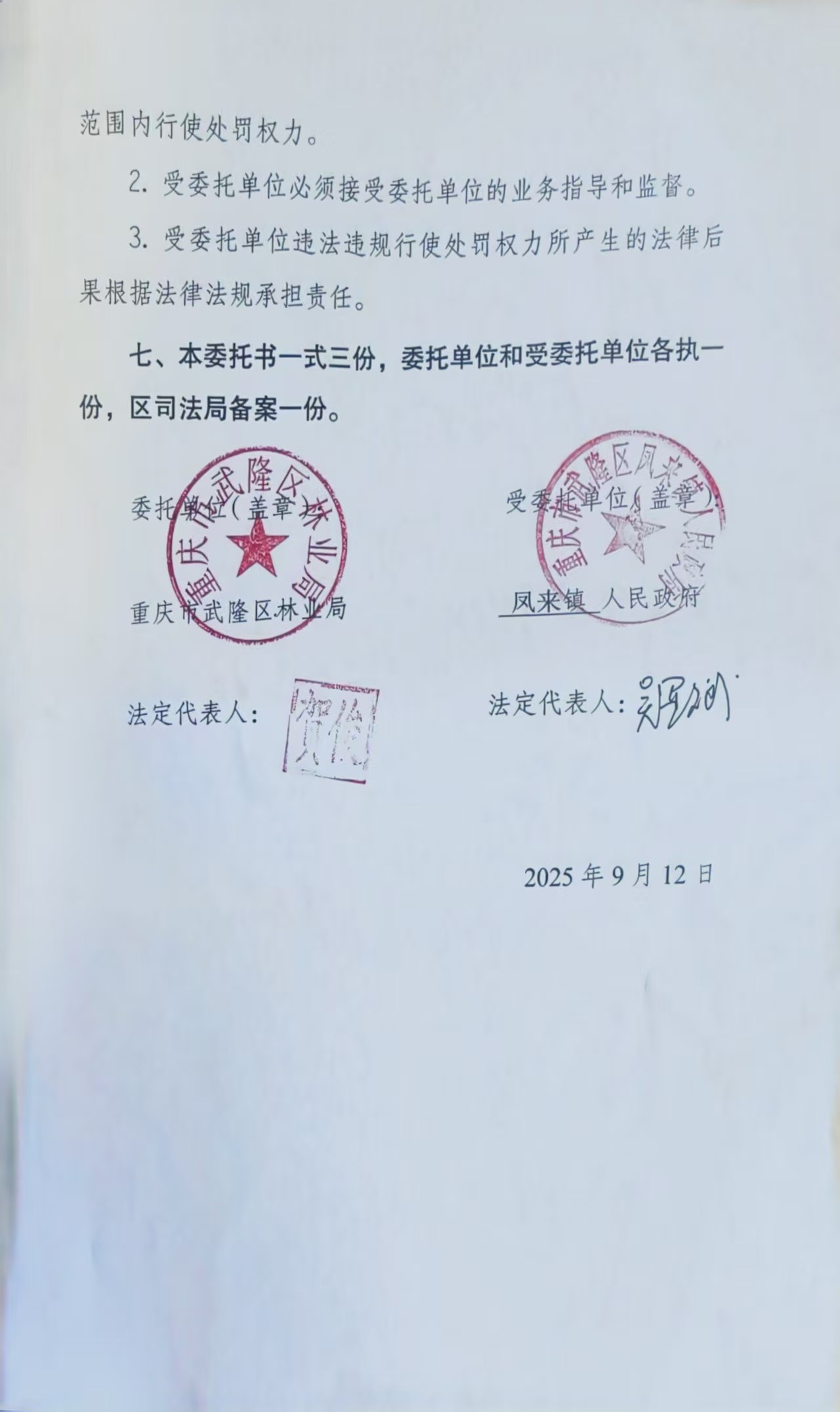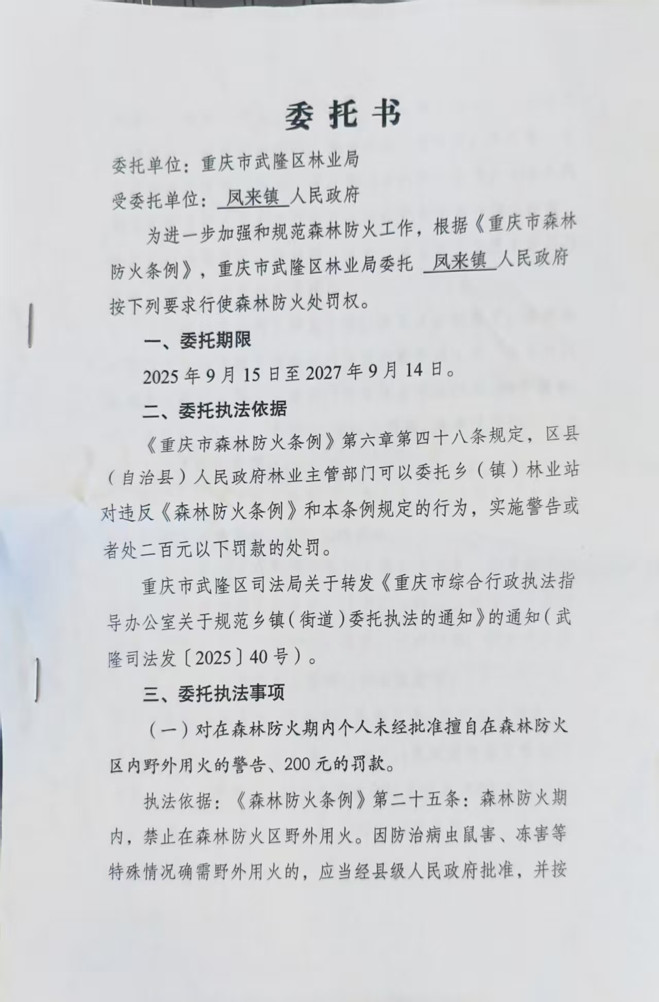 凤来镇森林防火委托执法书