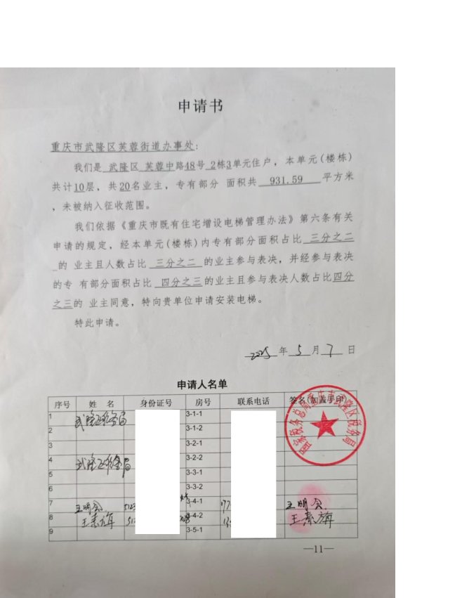 武隆区芙蓉街道芙蓉中路48号2幢3单元,其超过三分之二的楼栋业主于2025年5月向芙蓉街道办事处申请增设电梯,现将该项目申请书、申请人名单、增设电梯示意图进行现场公示,征求利害关系人意见。