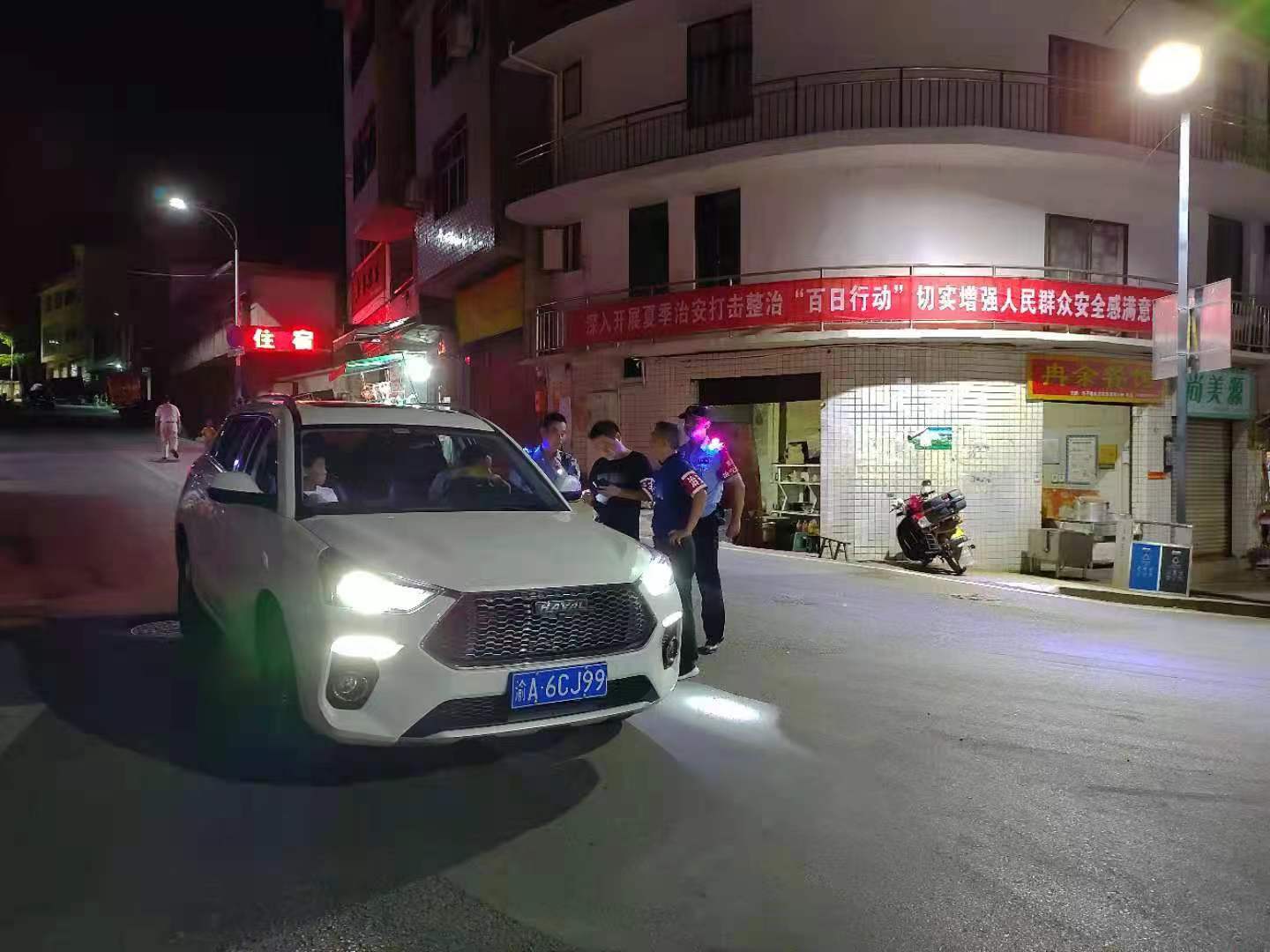 近日,火炉镇党委政府为积极落实重庆市公安局“百日行动”及武隆区委区政府的会议精神,维护我镇安全稳定的社会环境,2022年8月8日20点,由火炉镇党委书记甘元胜带队,与火炉镇政法委员、统战委员陈孝松一道,会同镇平安办、应急办、火炉派出所、夜巡队伍开展火炉场镇夜间巡查工作。此次巡查共计检查来往通行车辆21台次,查看旅馆、超市、烧烤店等重点场所6家。