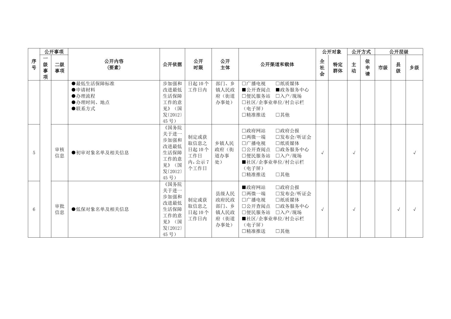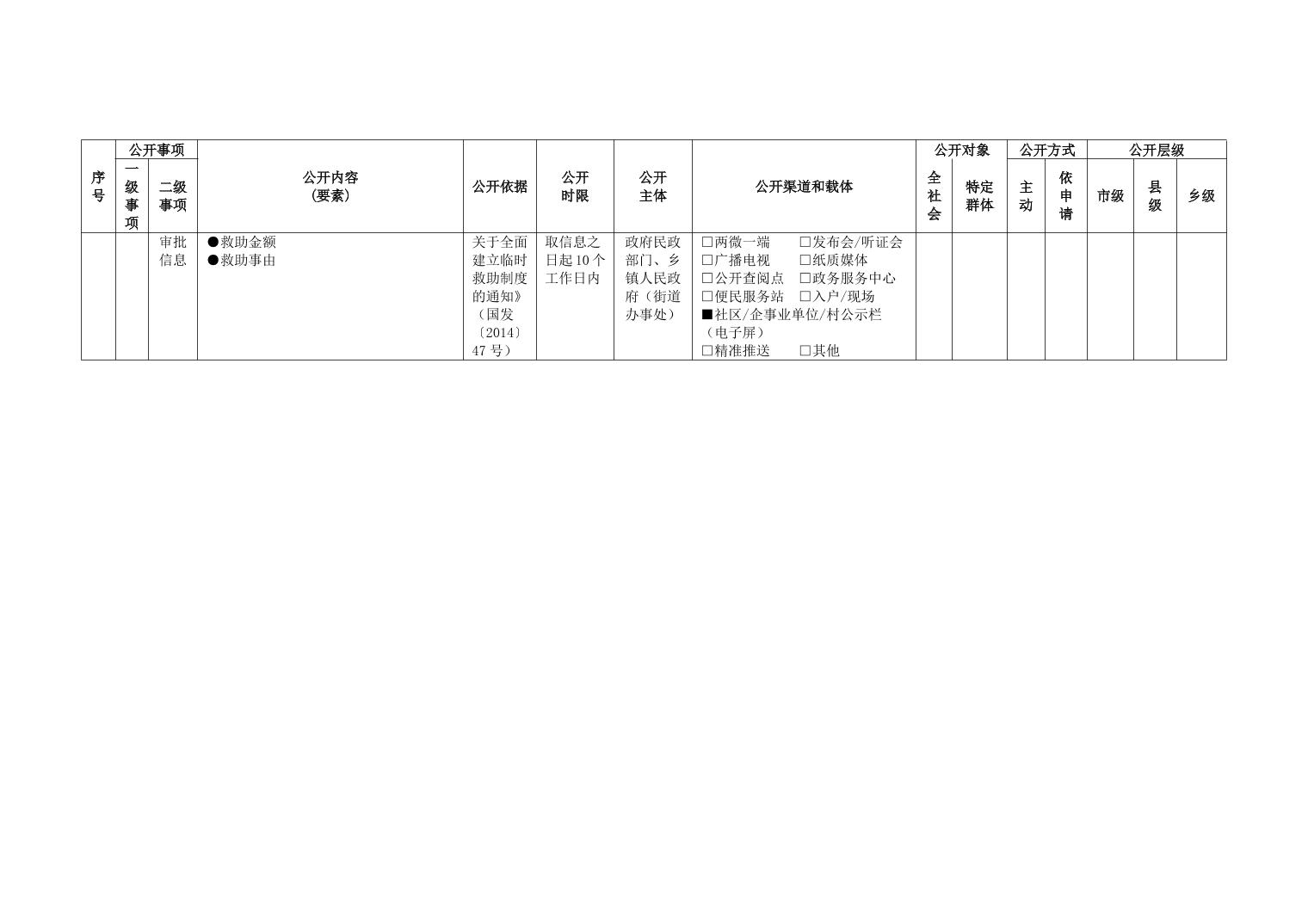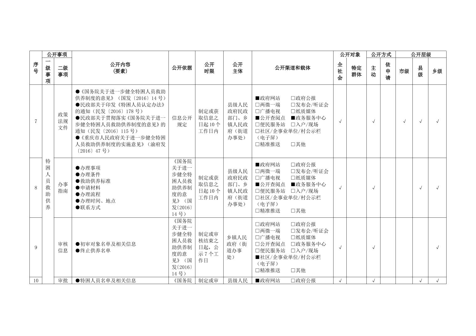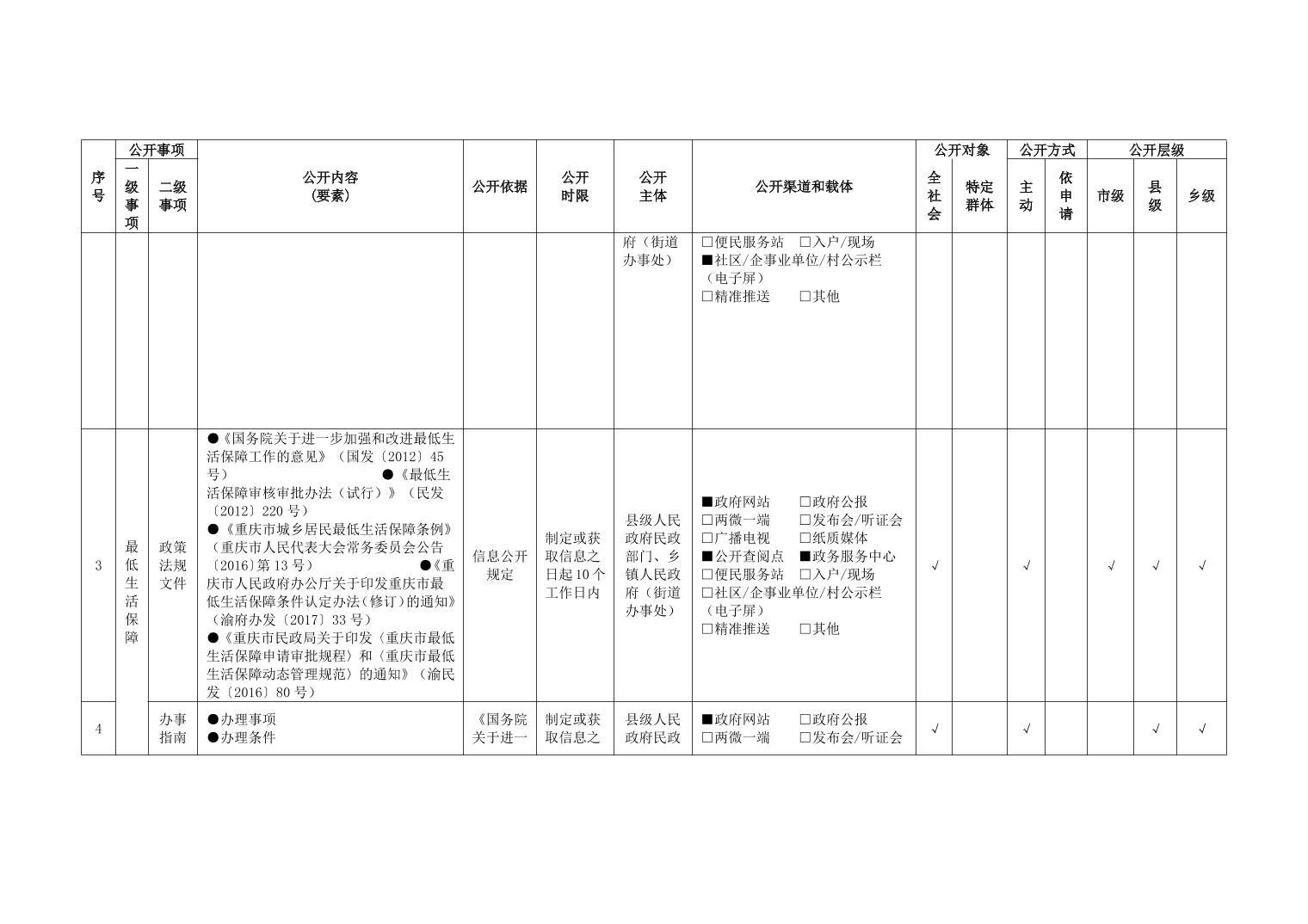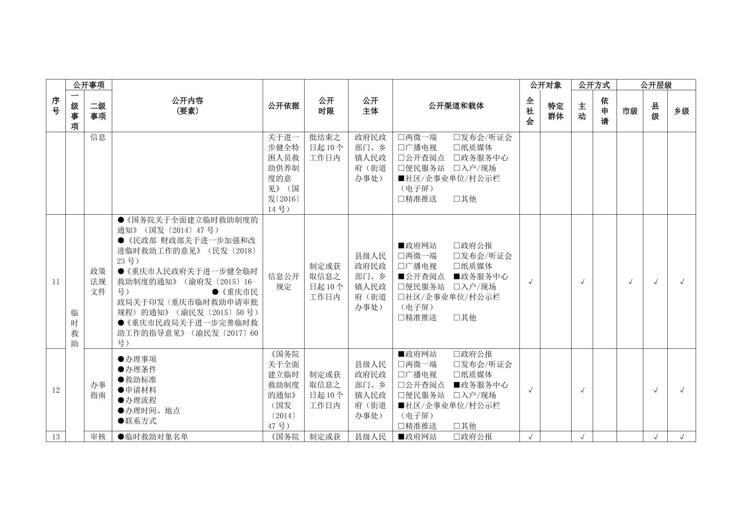重庆市武隆区人民政府仙女山街道办事处社会救助领域政务公开标准目录(2025年版)