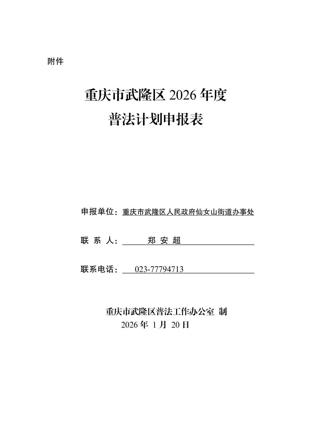 重庆市武隆区仙女山街道2026年度普法计划申报表