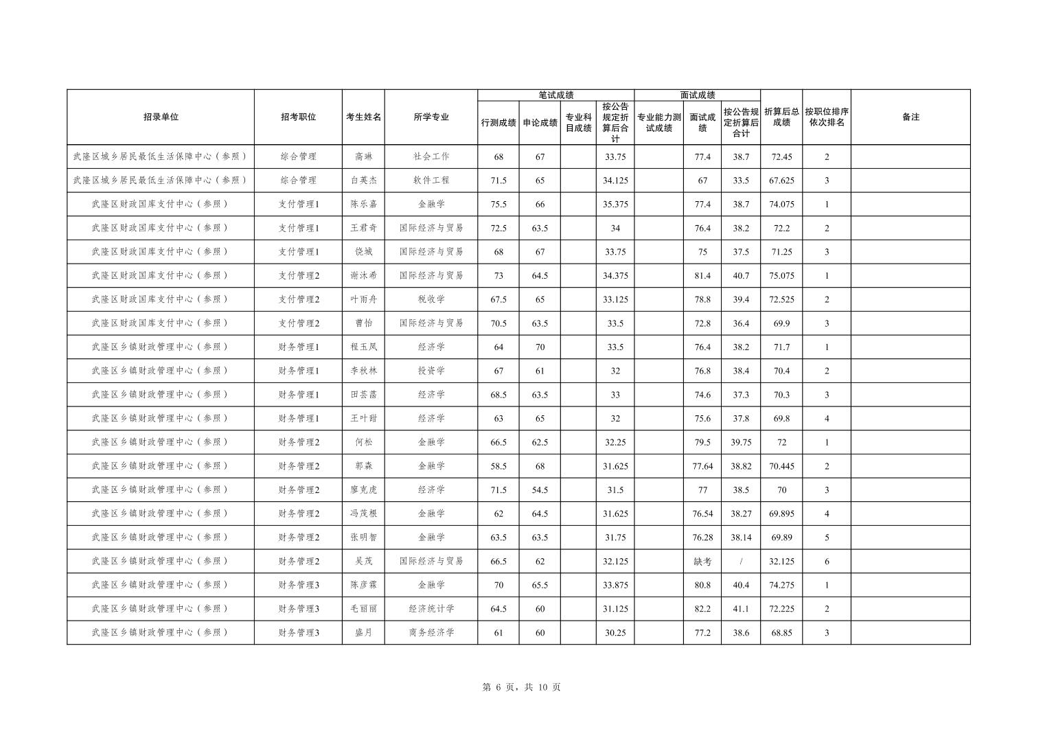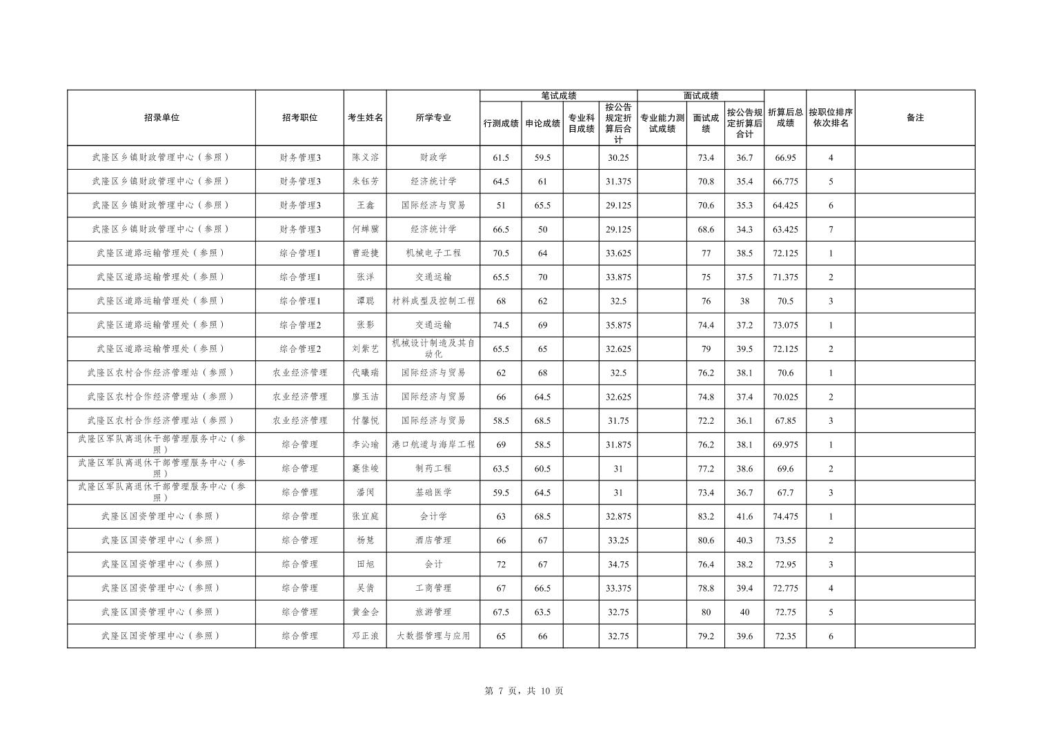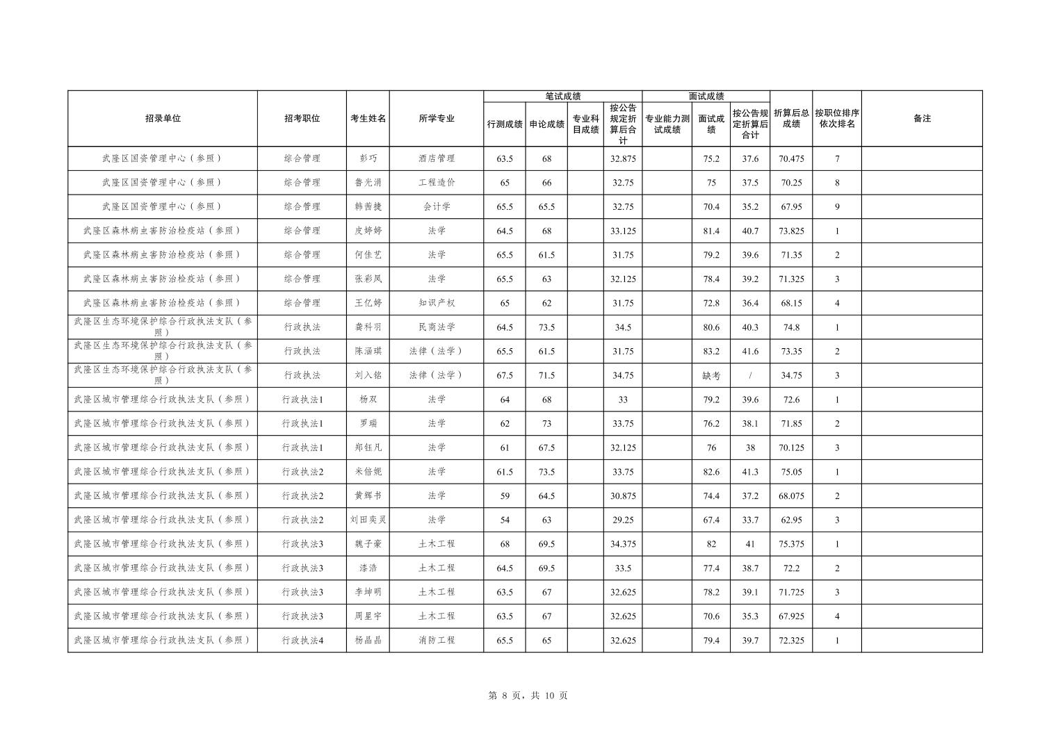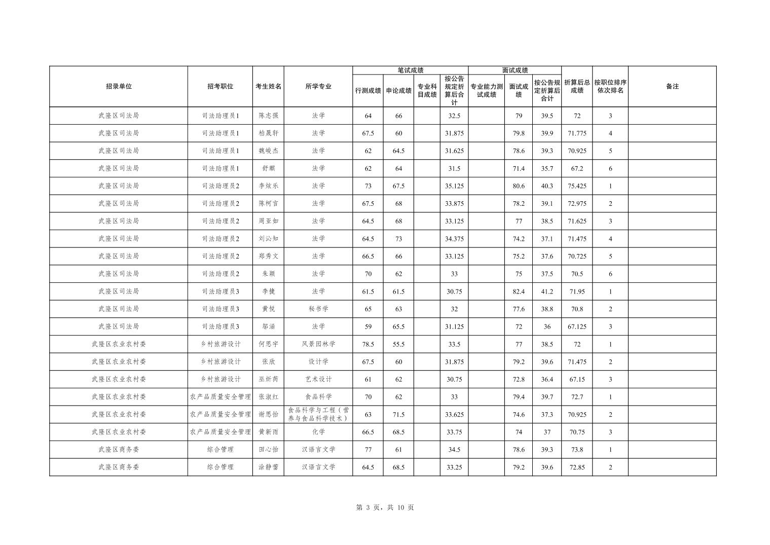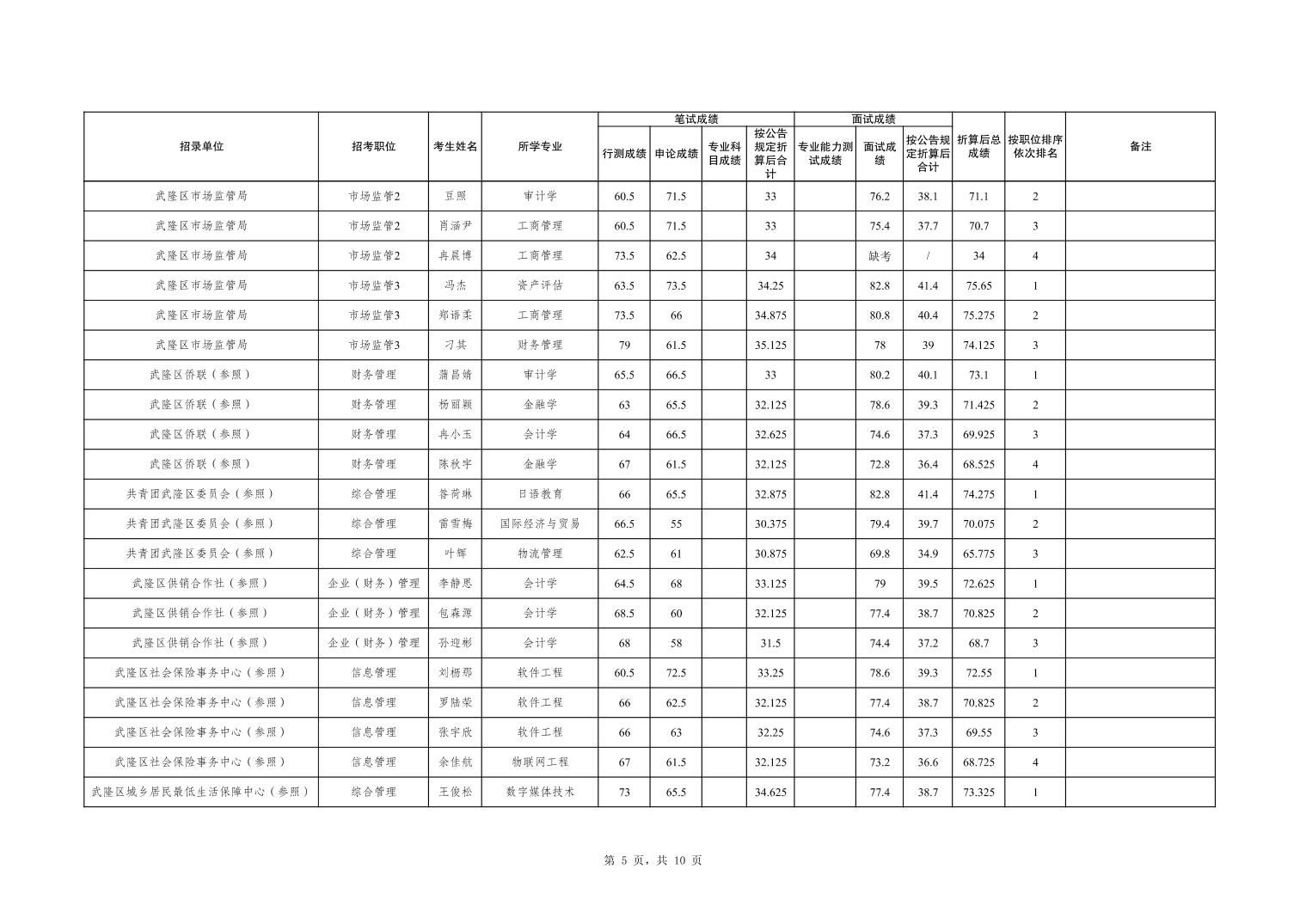 重庆市武隆区2026年度考试录用公务员笔试、面试和总成绩公布表