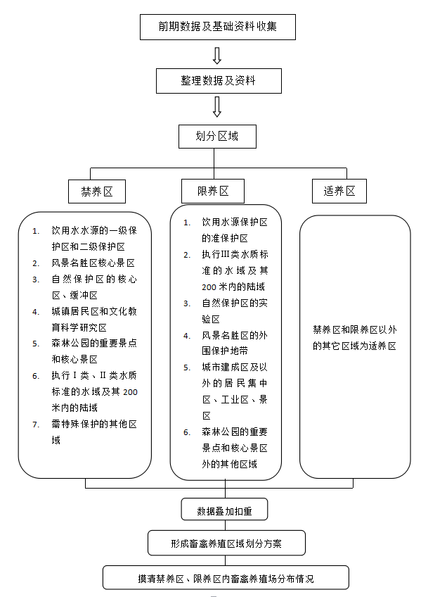 饮用水水源保护区三区划分要求。按照生态环境部(原环境保护部)、农业部《关于印发<畜禽养殖禁止区划定技术指南>的通知》(环办水体〔2016〕99号)要求,饮用水水源地一级保护区和二级保护区划入畜禽养殖禁止区。集中式饮用水水源保护区的准保护区划入限养区。