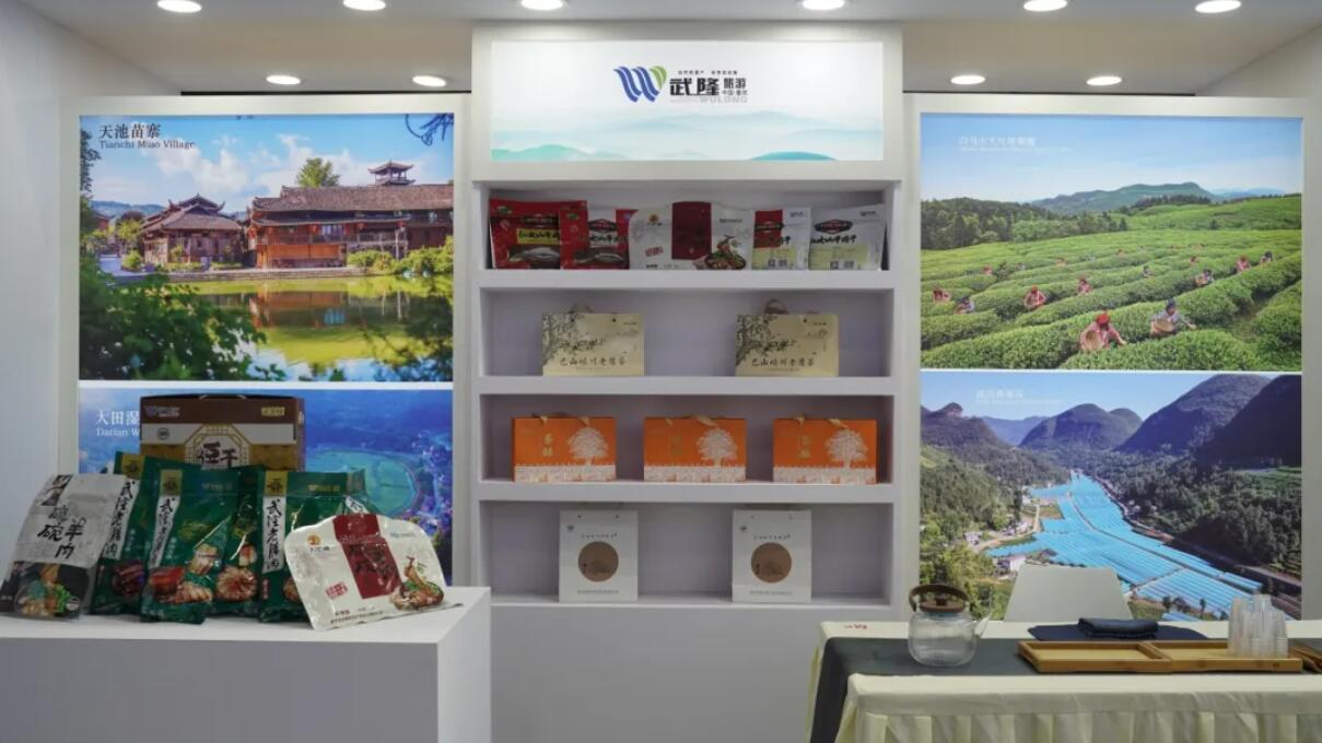 展厅设立了总体形象区、旅游精品景区、非遗文创区、农特产品区、旅游装备区、公共洽谈区等六大展区。总体形象区通过多媒体影像、图文资料等呈现武隆文旅发展成就,并设表演区动态演绎川江号子等地方民俗文化。精品旅游展区重点推介仙女山、天生三桥、龙水峡地缝、芙蓉洞、白马山天尺情缘等景区,以及大田湿地、纳溪原乡、挂壁水渠等乡村旅游点,凸显生态与人文资源禀赋。非遗文创区集中展示蜡染等非遗产品,“汤瓶八诊”等中医非遗技艺,以及流沙杯垫、拼图等创意产品,传统与现代交融吸引众多目光。农特产品区则推出羊角豆干、碗碗羊肉、老鹰茶啤酒、仙女红茶、番茄汁、仙女山矿泉水等特色美食饮品,展现“舌尖上的武隆”。 旅游装备区展示户外运动装备,以及仙女山国际户外运动公开赛、仙女山飞行节、仙女山国际马拉松节、仙女山露营音乐节等系列文体旅活动。