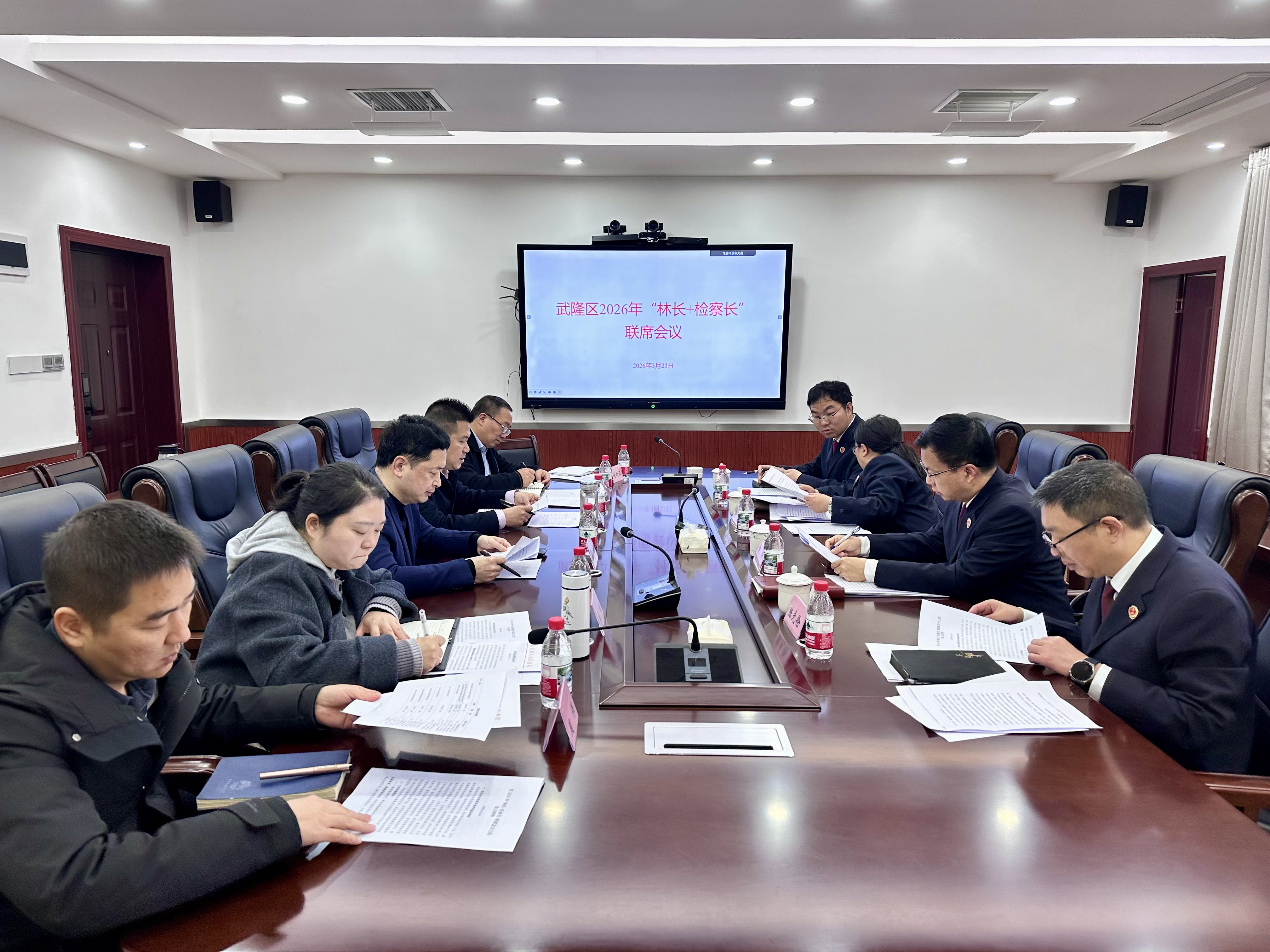 为健全“林长+检察长”协作机制,强化生态资源保护,3月23日上午,武隆区2026年“林长+检察长”联席会议在区林业局召开。区检察院检察长、区林业局局长及双方相关负责人参加会议。