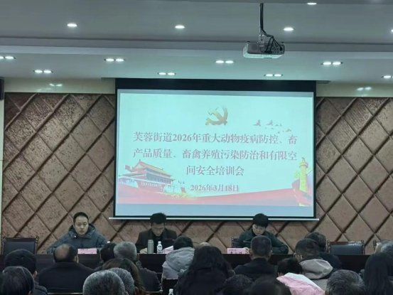 2026年3月18日,芙蓉街道组织召开2026年春季重大动物疫病综合防控行动和畜禽养殖粪污综合防治工作部署会议。