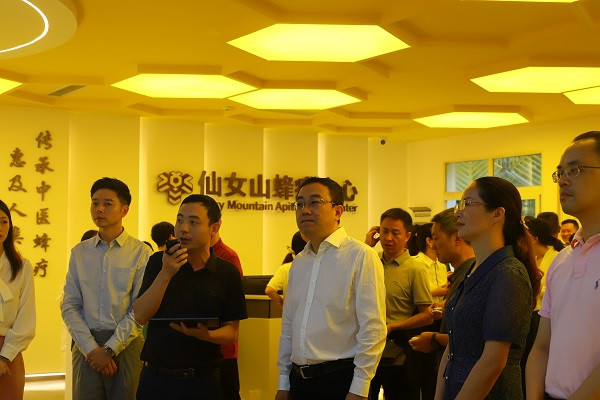 区委书记何庆,区领导刘芳敏、张凯出席揭牌活动并参观蜂疗中心。