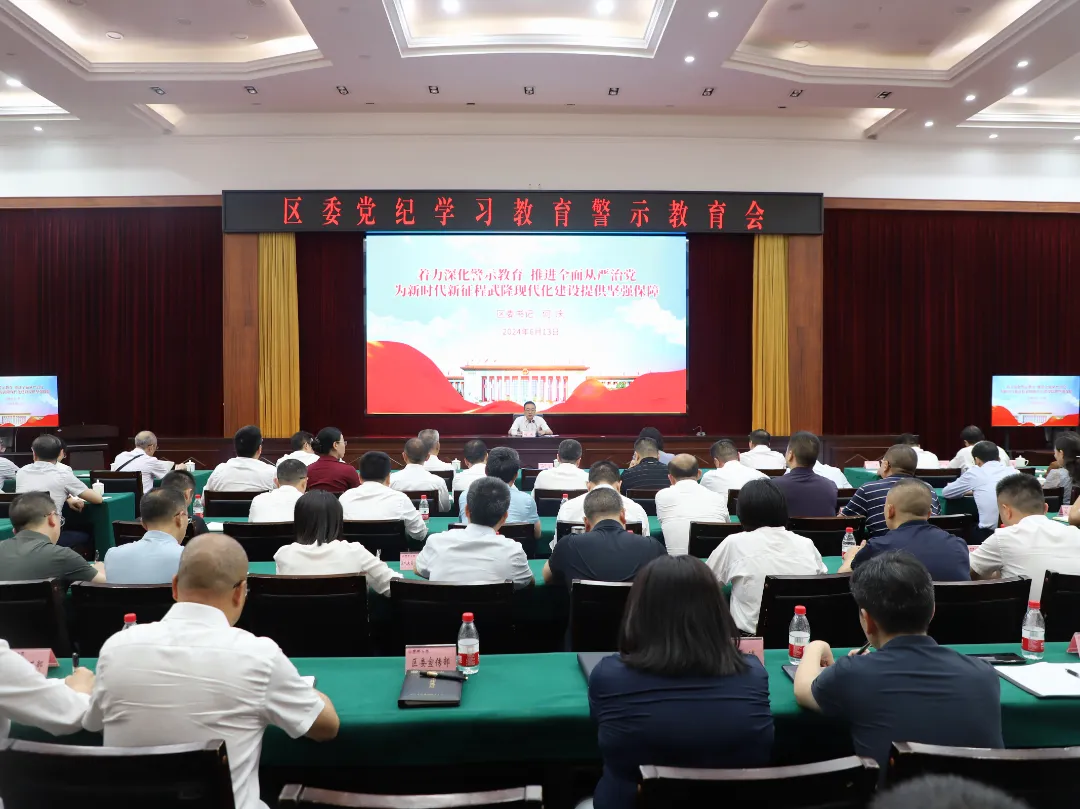 6月13日,区委党纪学习教育警示教育会举行。区委书记何庆主持会议并讲纪律党课。他强调,要深入学习贯彻习近平总书记关于全面加强党的纪律建设的重要论述,认真落实市委党纪学习教育警示教育会议精神,扎实开展以案说德、以案说纪、以案说法、以案说责,教育引导广大党员干部自觉学纪、知纪、明纪、守纪,进一步推动党纪学习教育走深走实,为新时代新征程武隆现代化建设提供坚强保障。