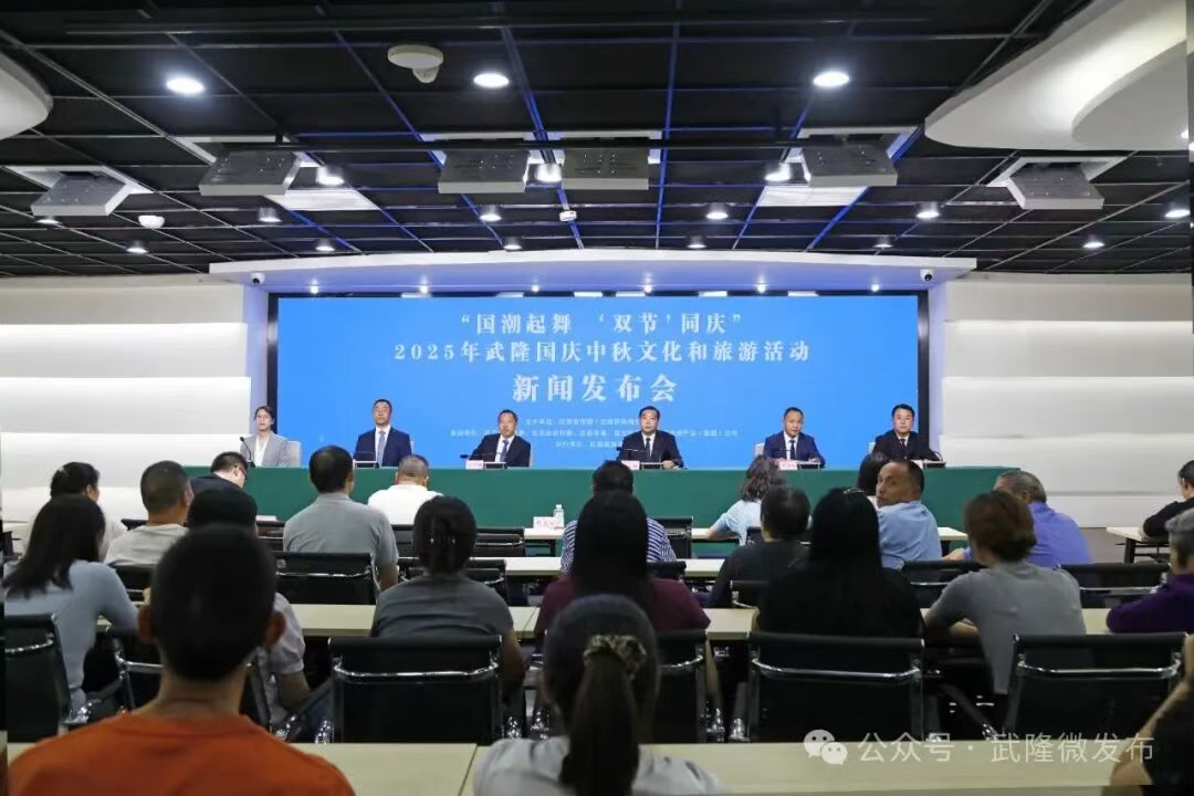 9月26日,2025武隆区国庆中秋文化和旅游活动新闻发布会在区融媒体中心新闻发布厅举行,围绕“国潮起舞‘双节’同庆”主题,从节庆活动、旅游线路、惠民政策、交通保障、吃住服务等多方面,详解武隆区为8天“超长黄金周”准备的文旅盛宴,诚挚邀请全国游客相聚世界自然遗产地,共赏山水、共度佳节。